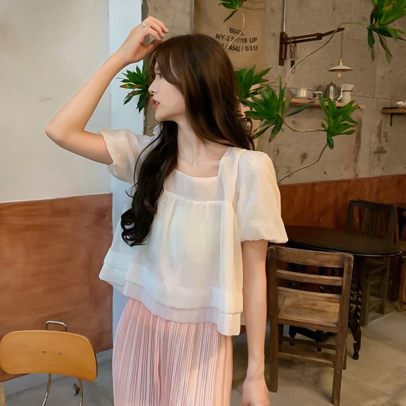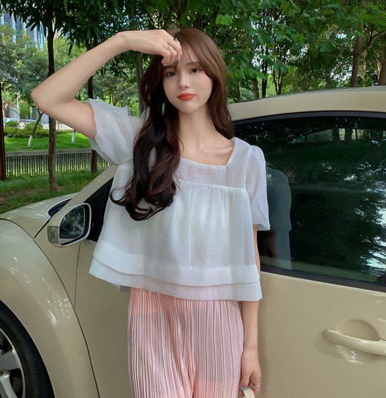 サマースタイルカラーシャツ ホワイトトップス リボン 大人ガーリー スウィート キュート カジュアル 夏物 スクウェア YY-ファッション21230494027