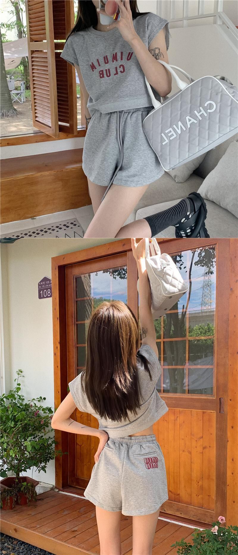 色:グレートップ,ブラックトップ,グレーパンツ,黒いズボン