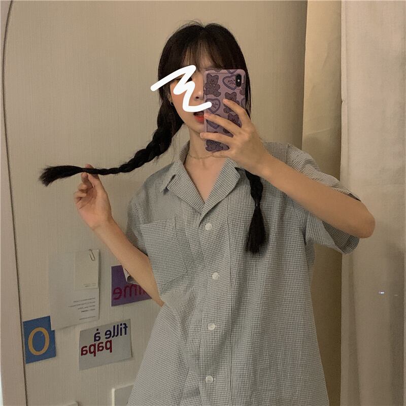 格子柄ショートシャツ トップス パンツ サマー 夏物 YY-ファッション97512410429