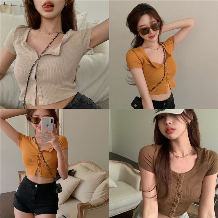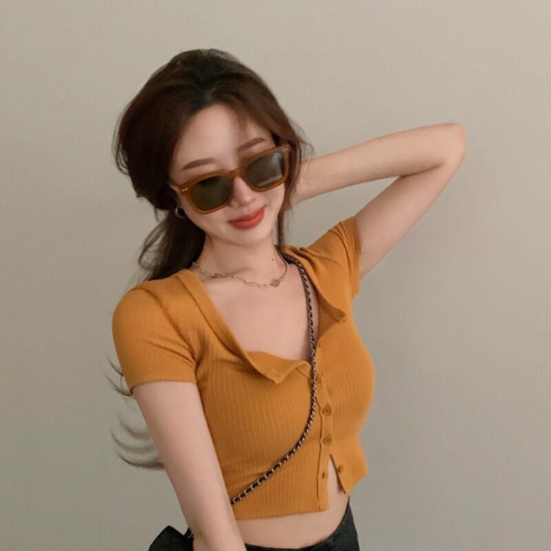 ニットTシャツ サマー薄手カーディガンショートハイウェストトップス 夏物 ヨーロピアン YY-ファッション65482591127