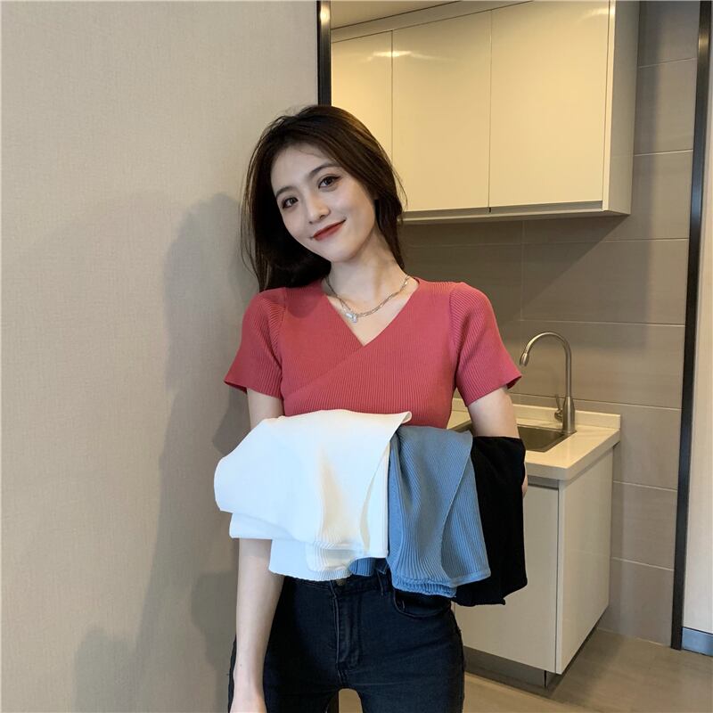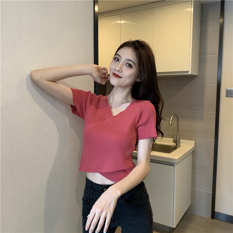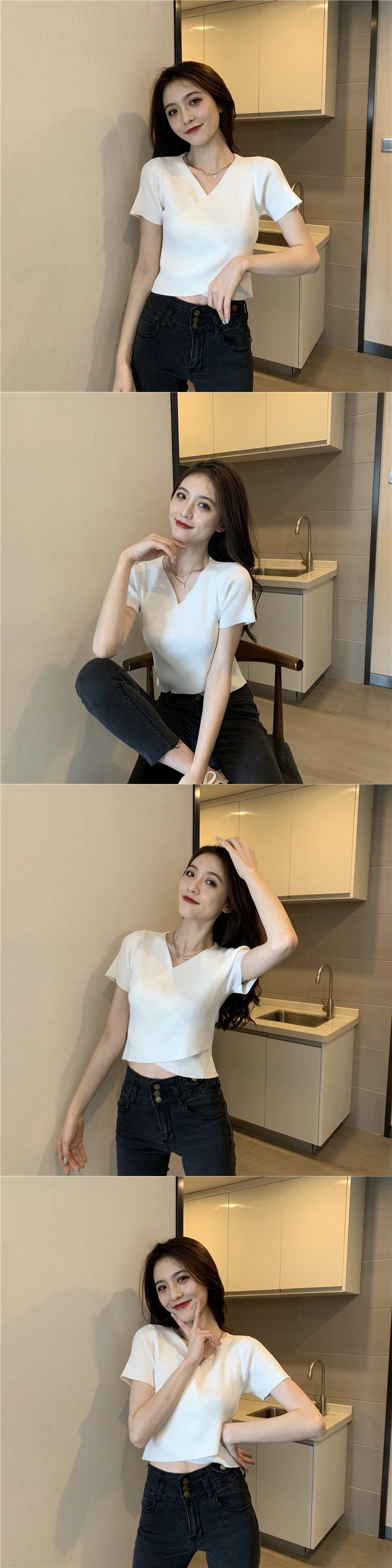 スタンダードハイウェストウェストスリムトップス Vネック薄手セーター レトロ YY-ファッション43064703928