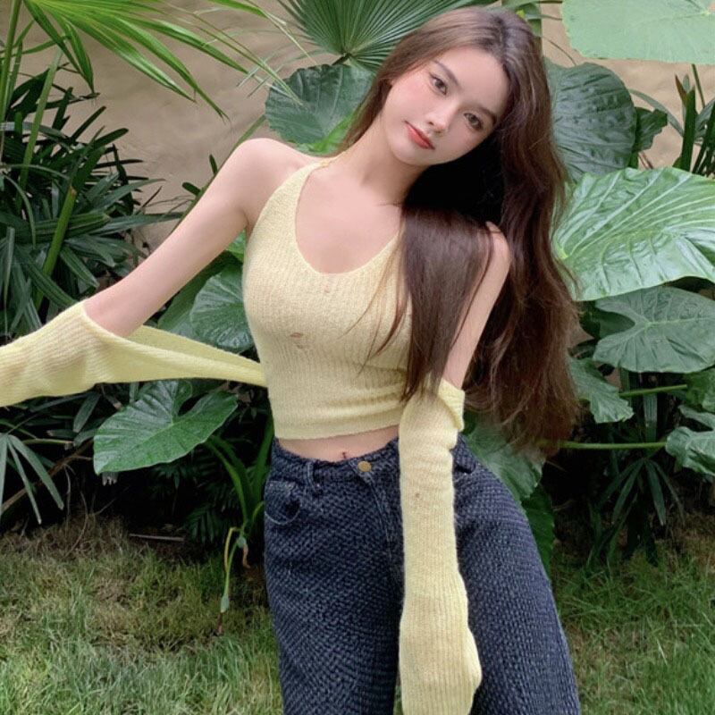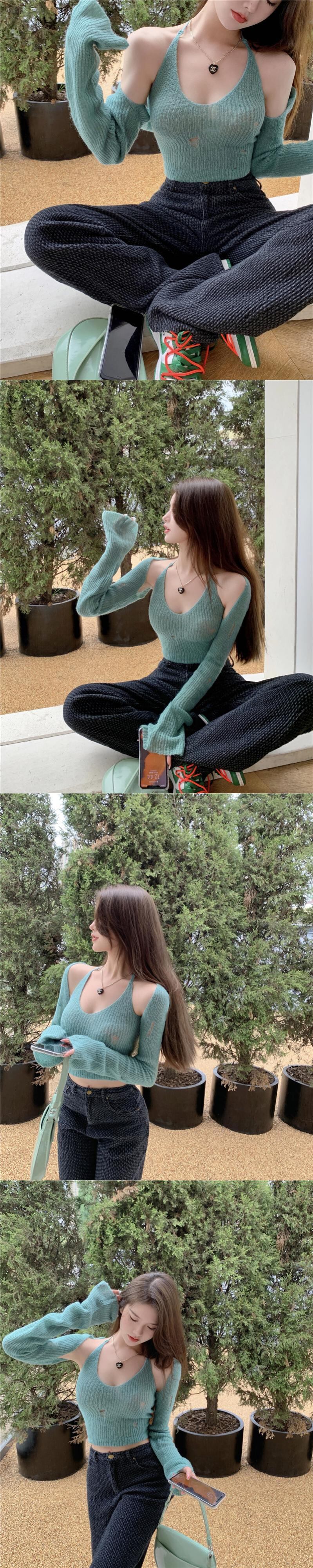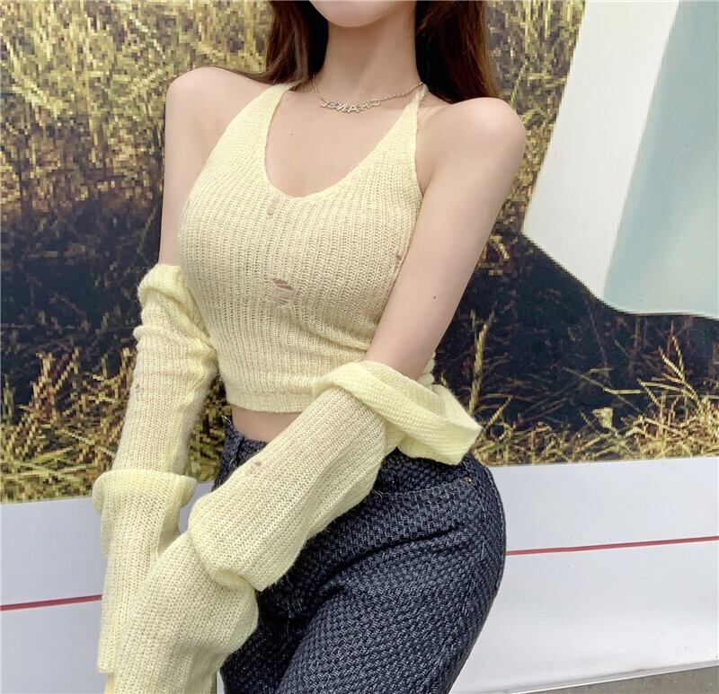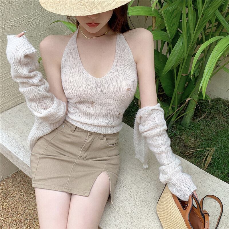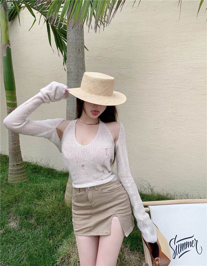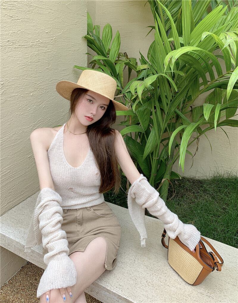 ホルターニットサマー薄手ホワイトショートジャケット 夏物 YY-ファッション62596752916