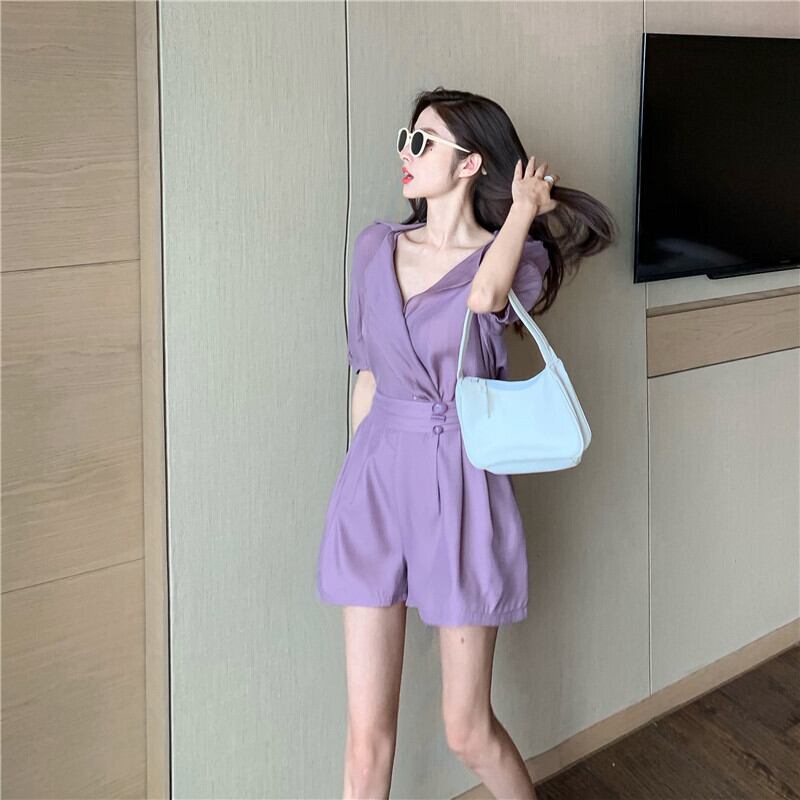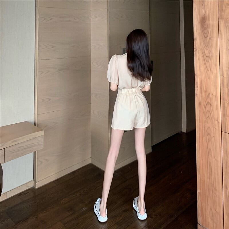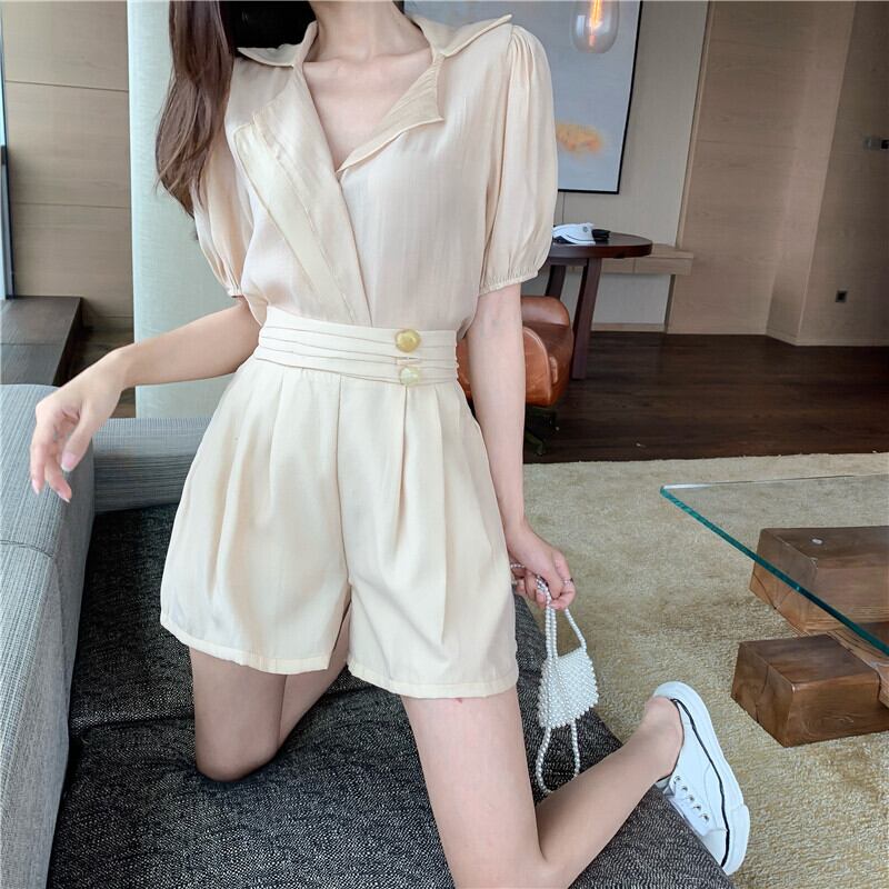 サマースタイルカラーシャツ トップス ハイウェストウェストワイドレッグカジュアルショーツ 夏物 ブルマー ワイドパンツ YY-ファッション13079827593