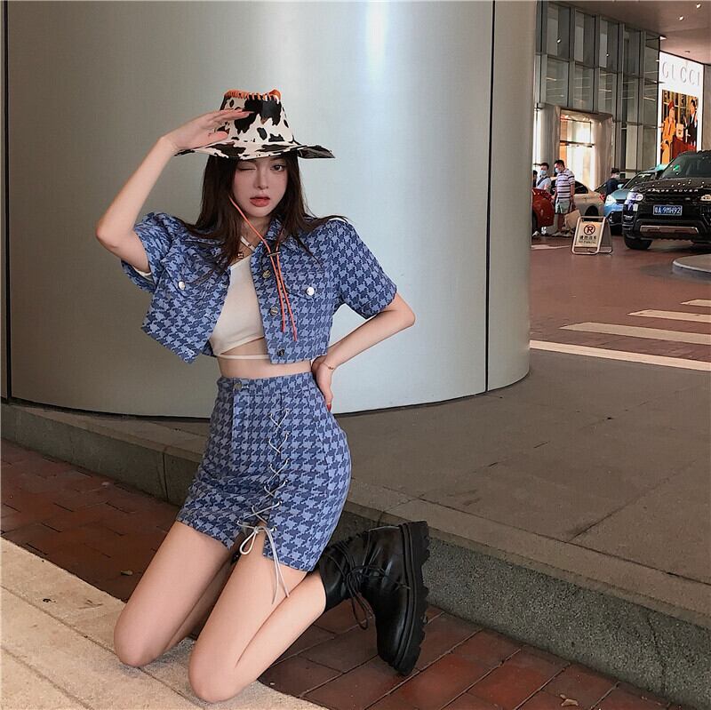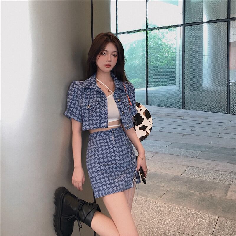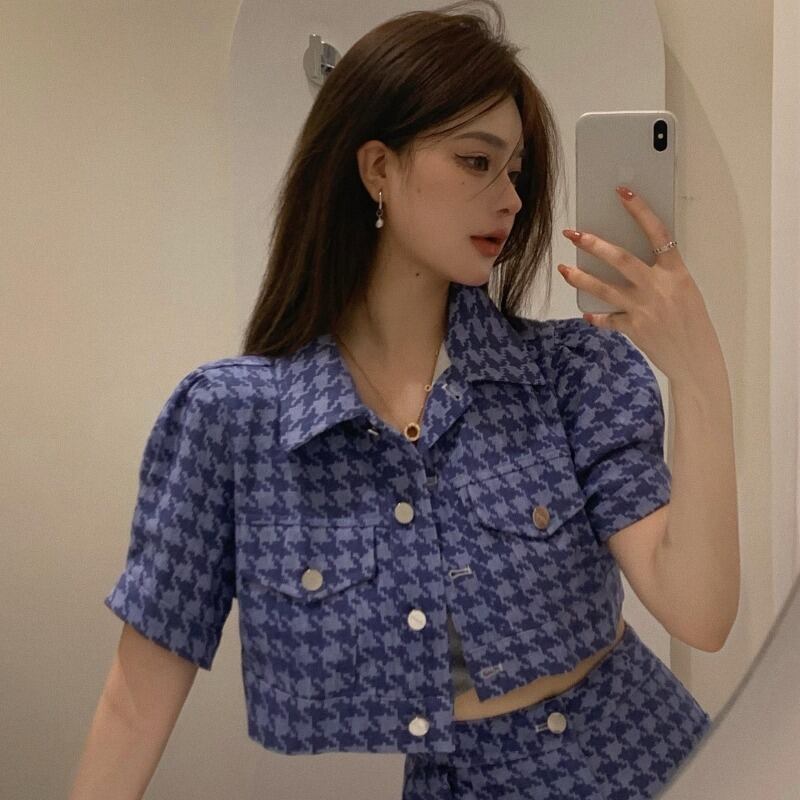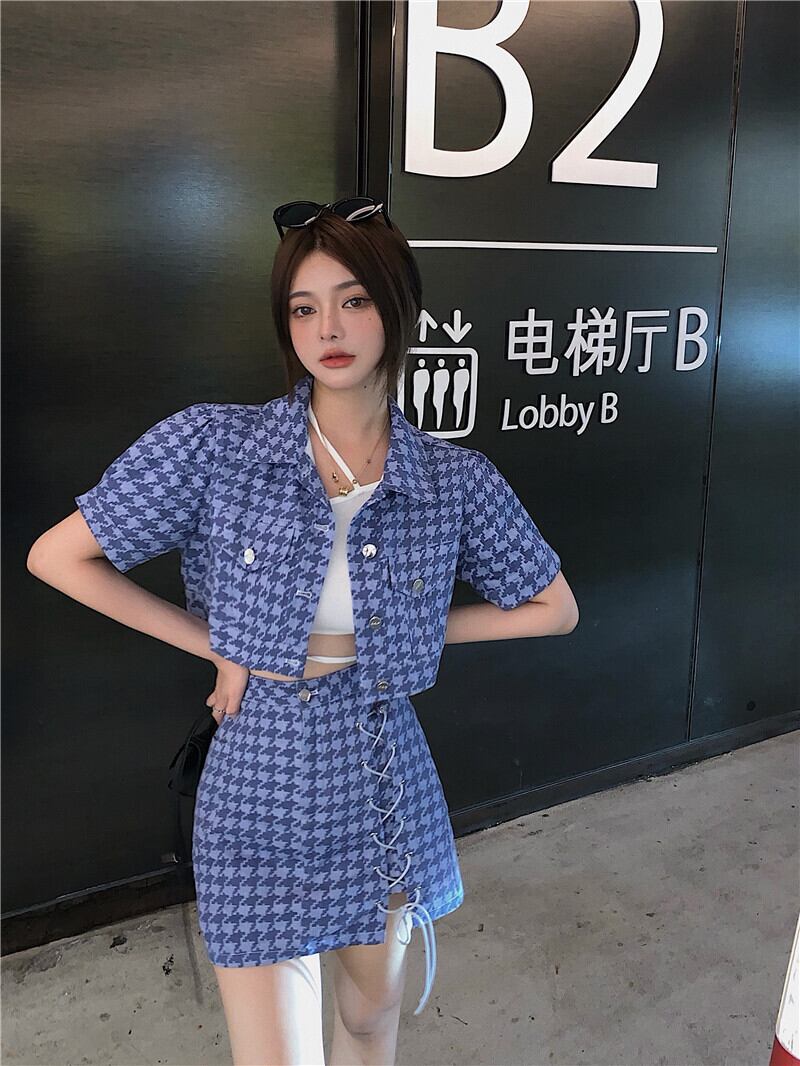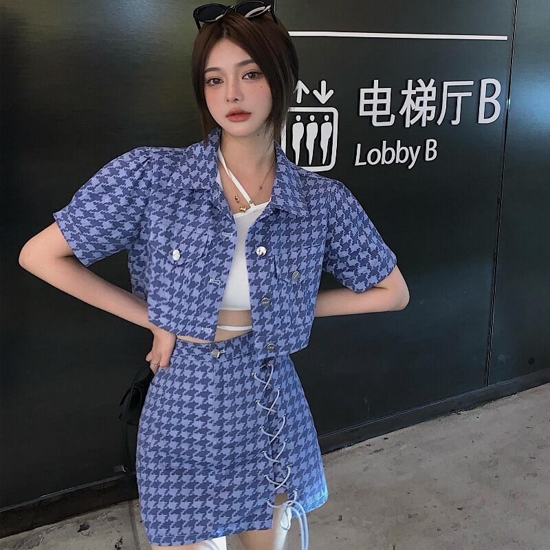 ブルーショートシャツ サマースカート 夏物 YY-ファッション46860929249