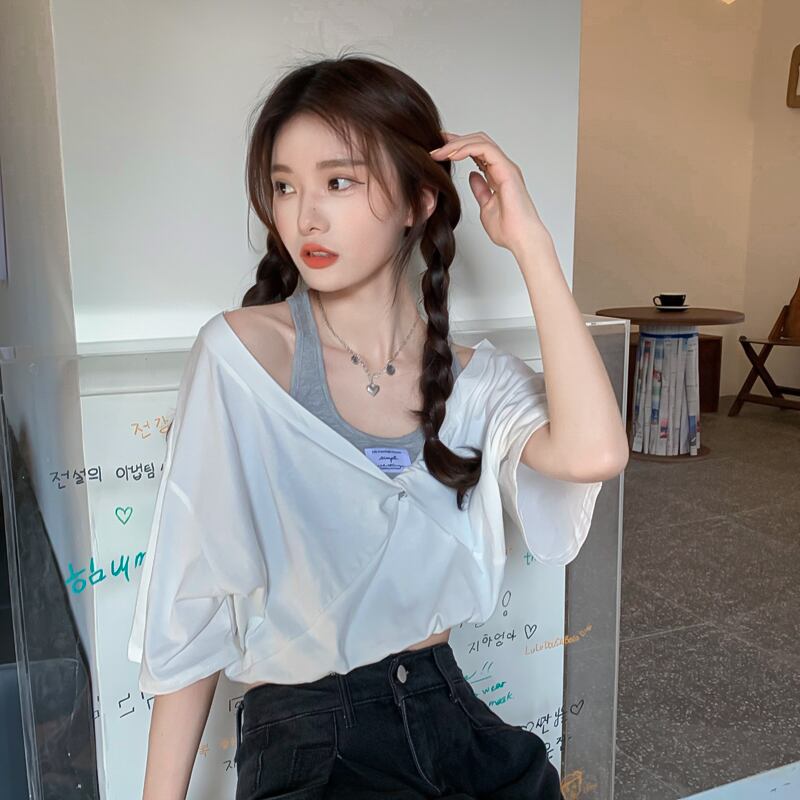 Tシャツ ショートルーズツーピーススタンダードサマー レトロ 夏物 YY-ファッション72622438906