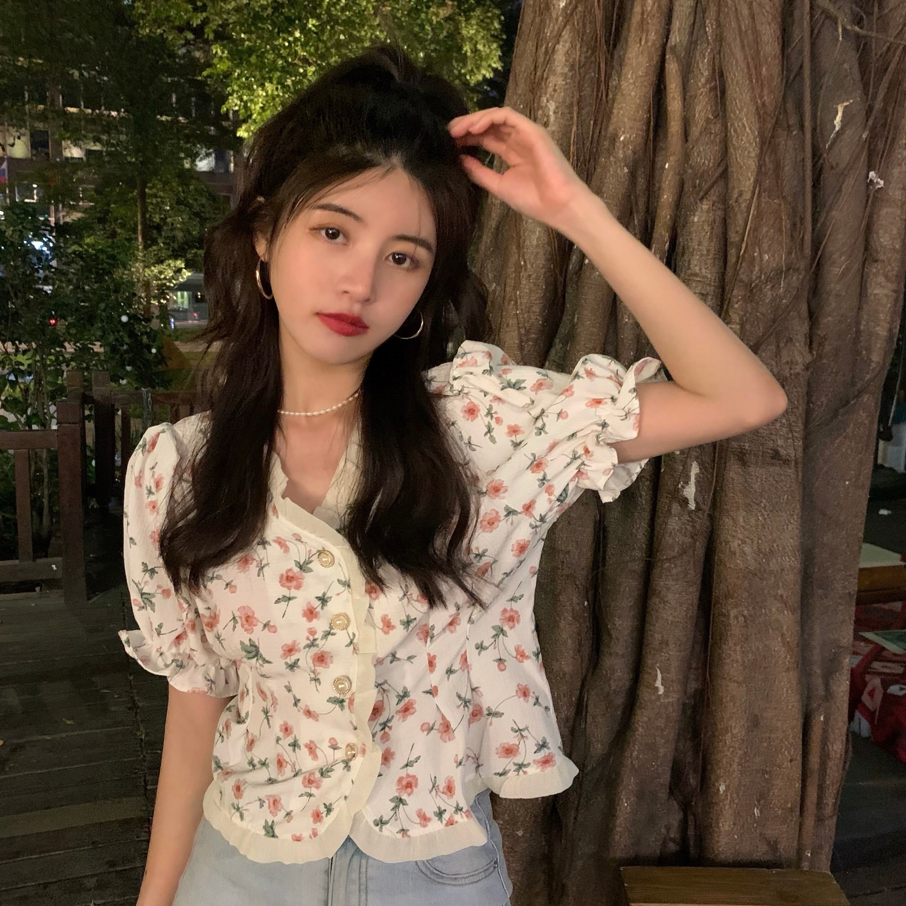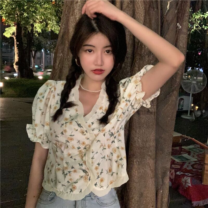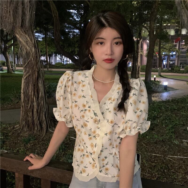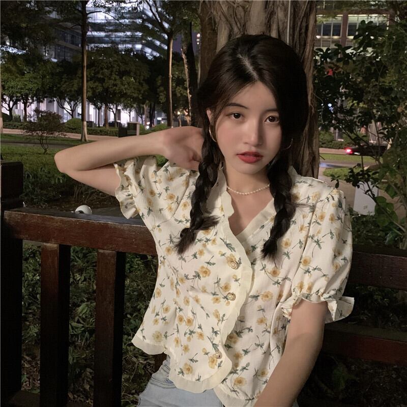 ショートシャツ レディースサマースタイルスリーブフローラルトップス 大人ガーリー スウィート キュート カジュアル 夏物 花柄 YY-ファッション29970186301