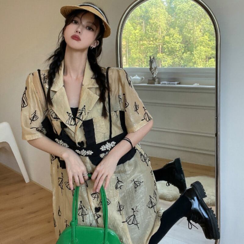 サマースタイルスタンダードフローラルドレス バックル レトロ 夏物 花柄 YY-ファッション61729245255