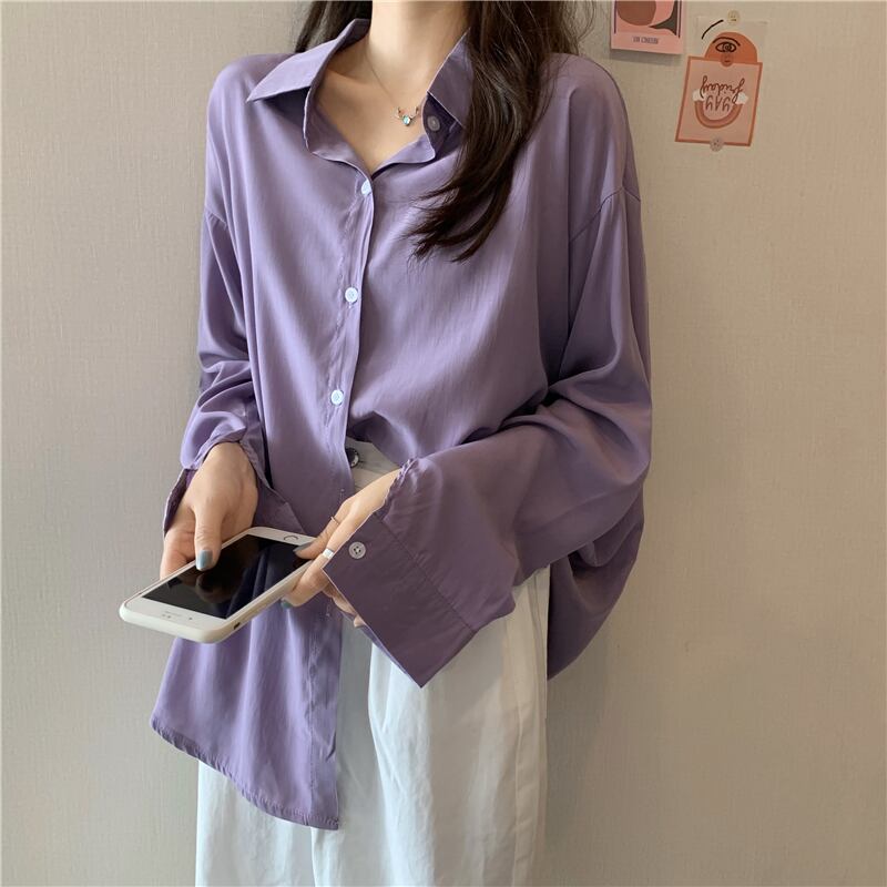 シャツ サマー薄手トップス ロング 夏物 パープル YY-ファッション75586667748