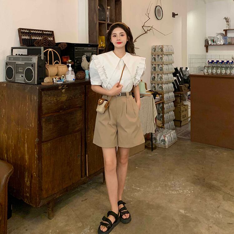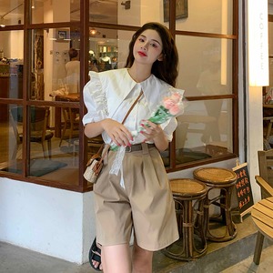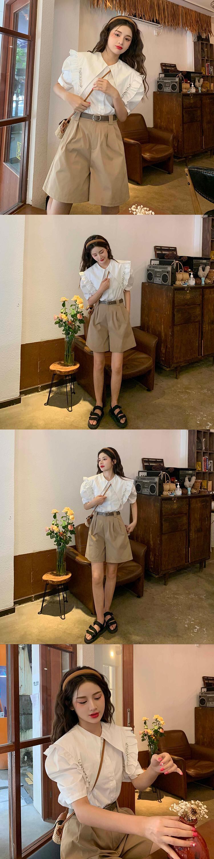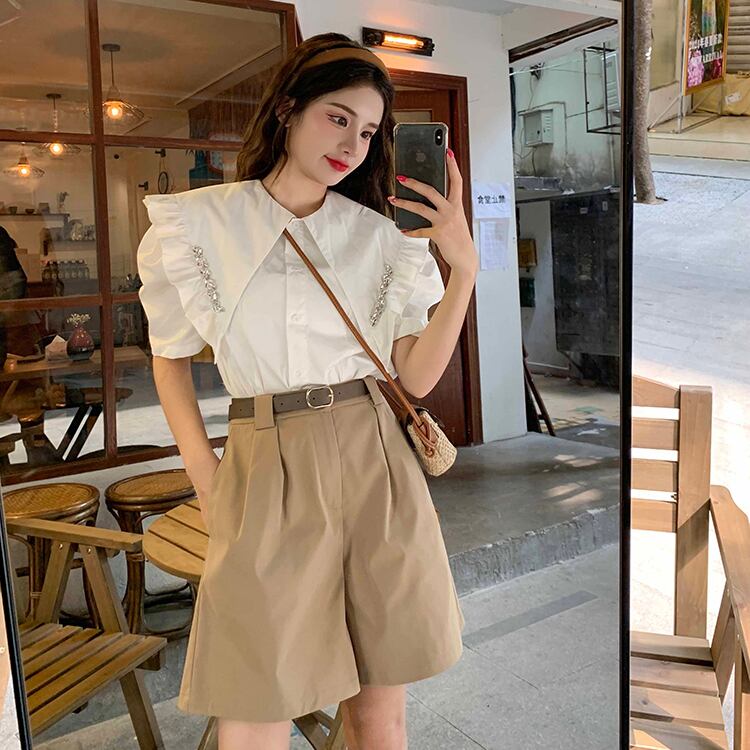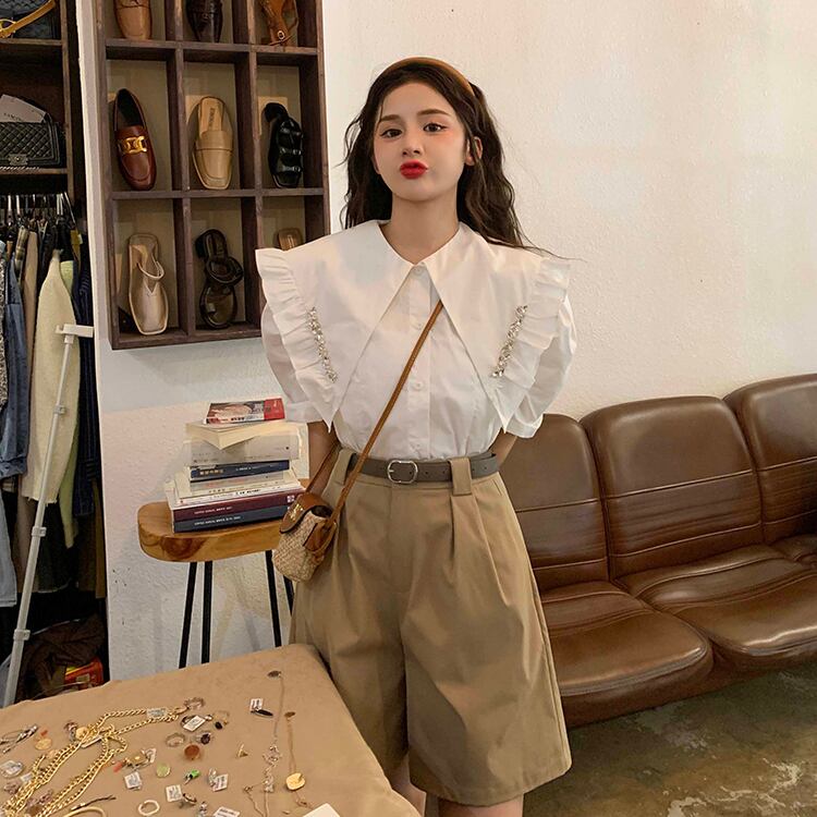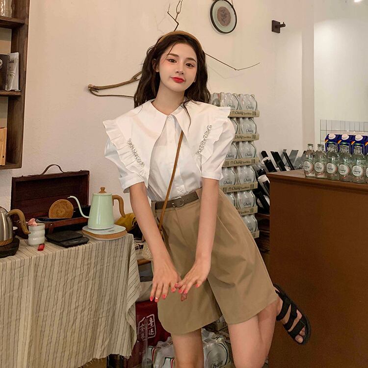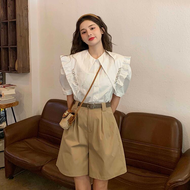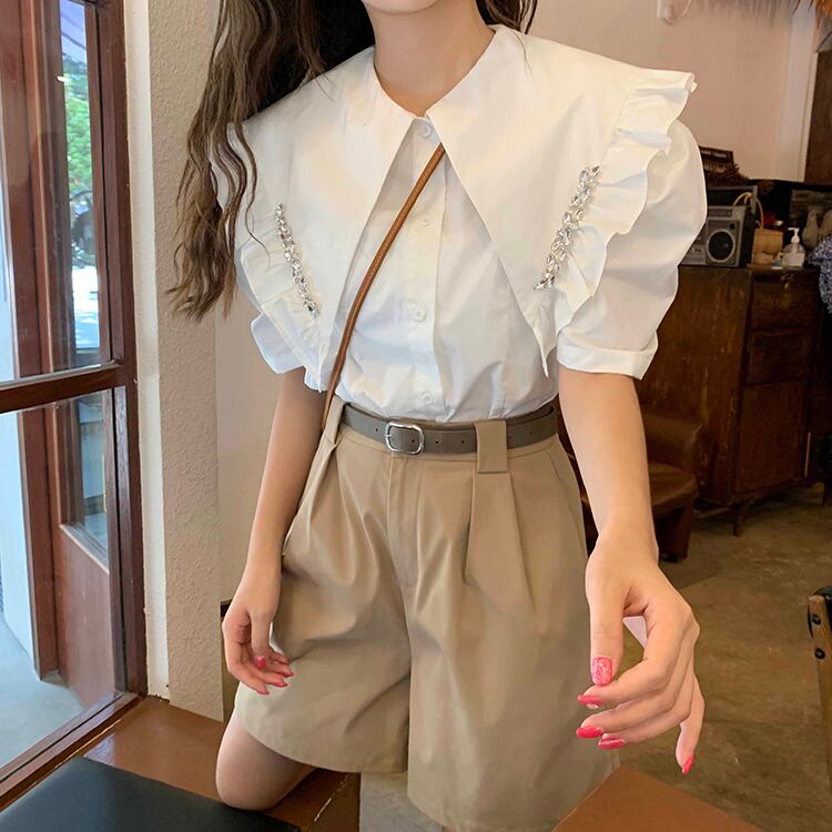 ホワイトカラーシャツ サマースリーブショートトップス 大人ガーリー スウィート キュート カジュアル 夏物 YY-ファッション44540852878