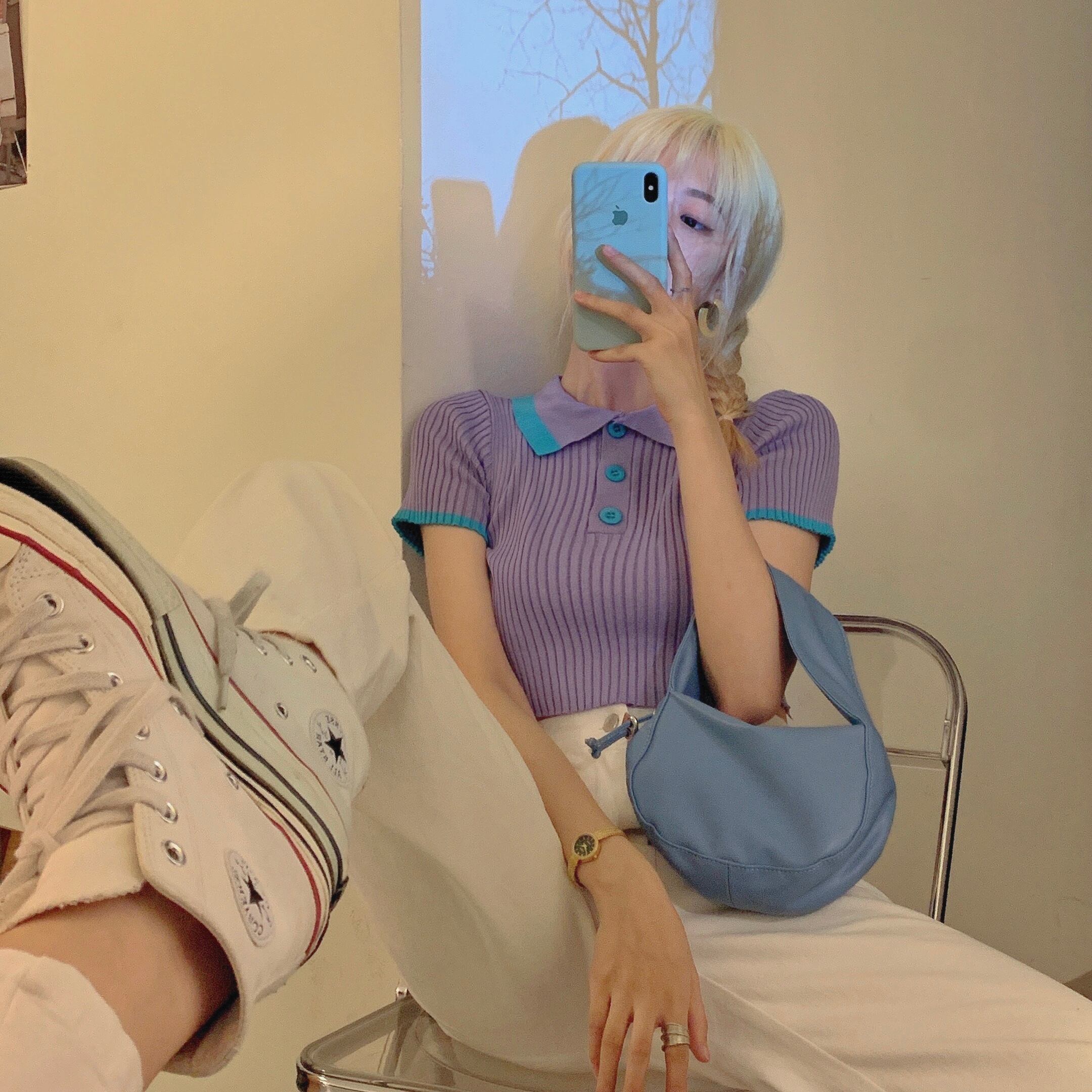 ニットシャツ サマーショートスリムTシャツ 半袖スリーブトップス ハーフスリーブ 夏物 YY-ファッション13151861589