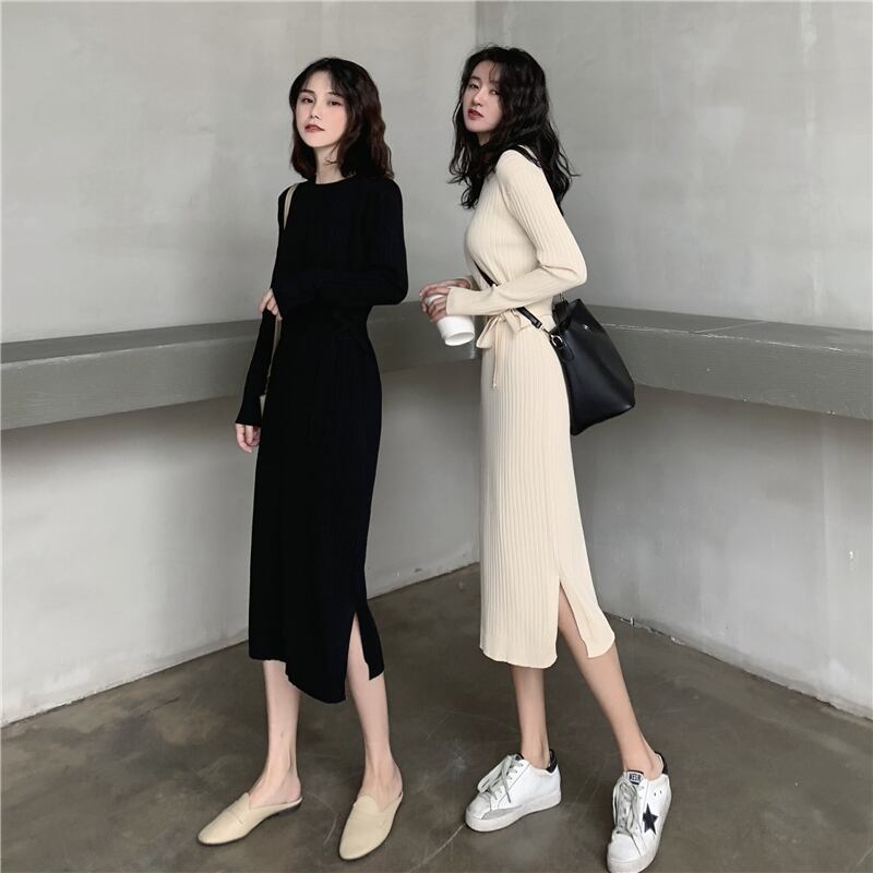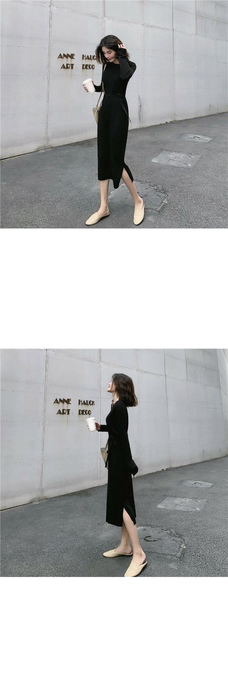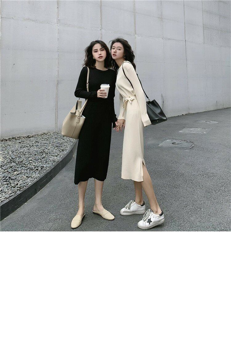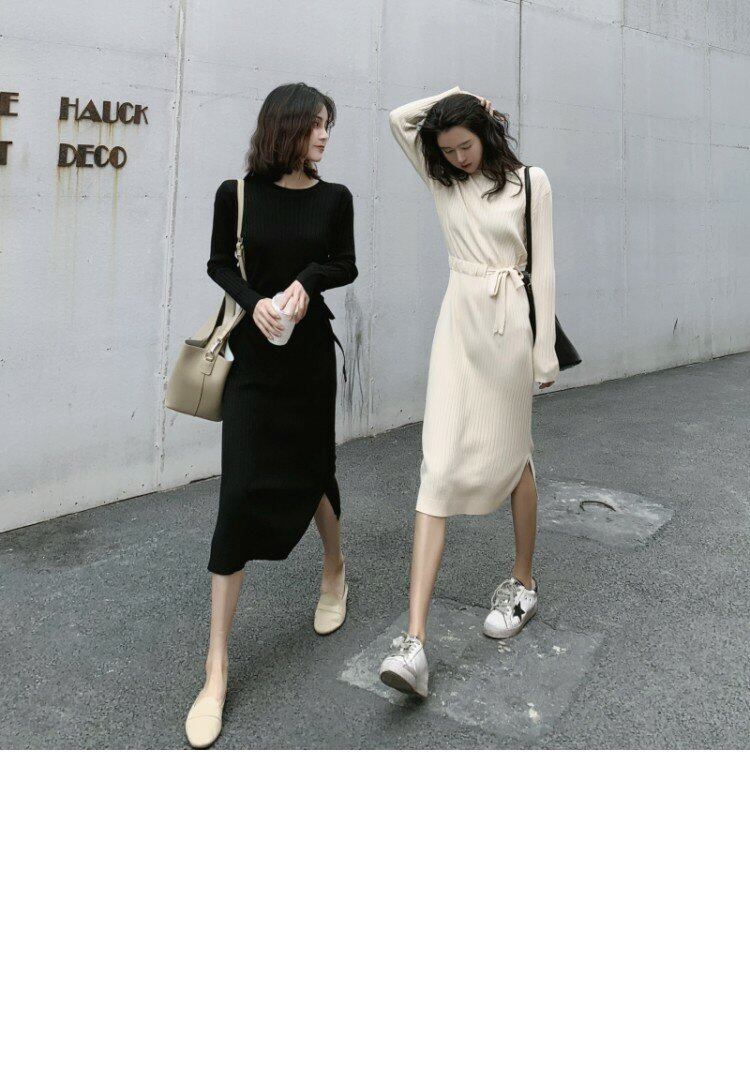 オータムスタンダードウェストニットドレス Aラインブラックスカート レトロ 秋物 YY-ファッション97915291403