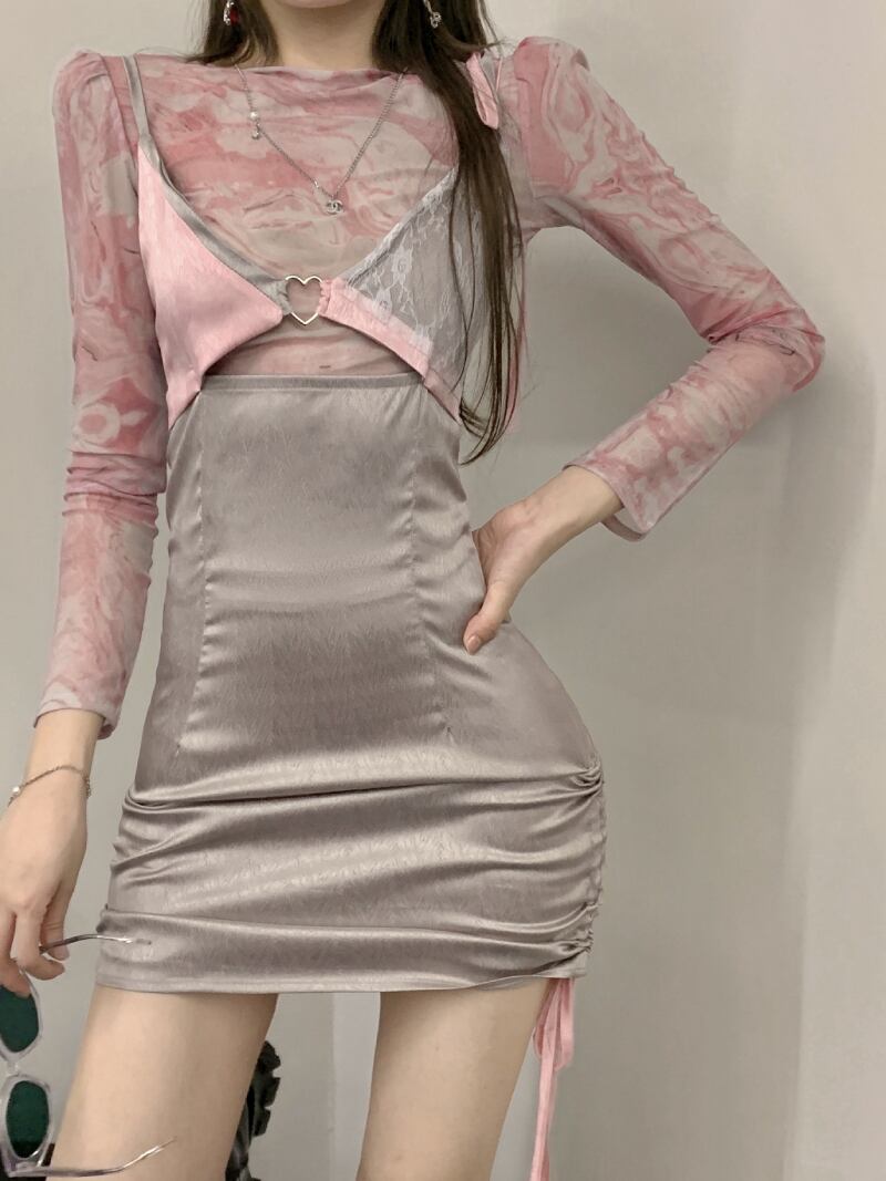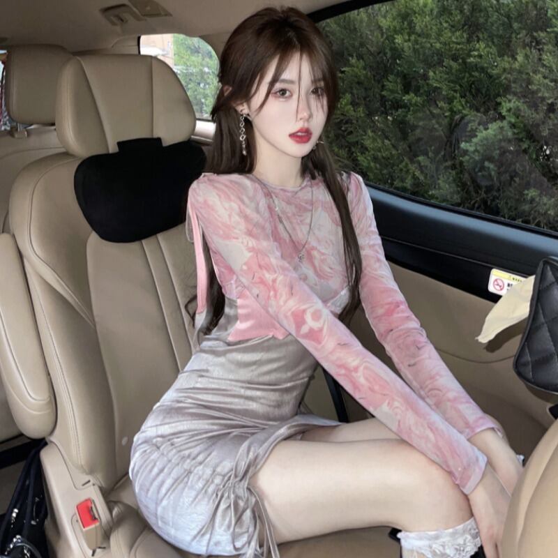 サマープリントシャツ レースプリーツドレス 夏物 YY-ファッション69575110336