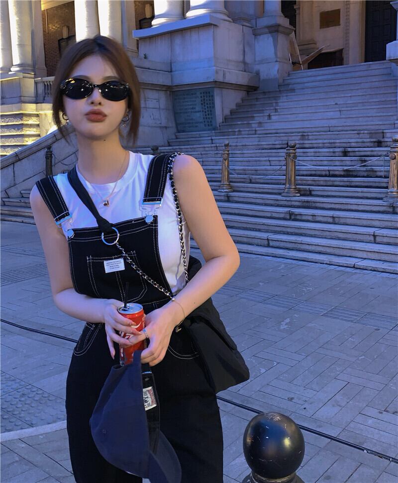 サマーオーバーオール スリムラウンドネックノースリーブ 大人ガーリー スウィート キュート カジュアル 夏物 Oネック YY-ファッション82053118915