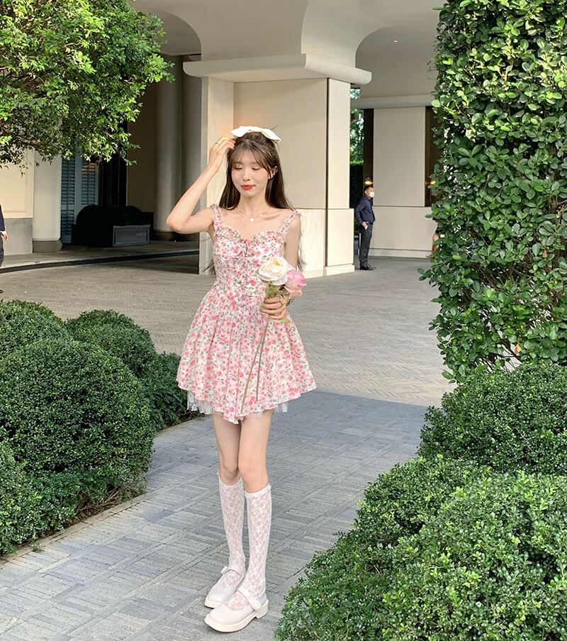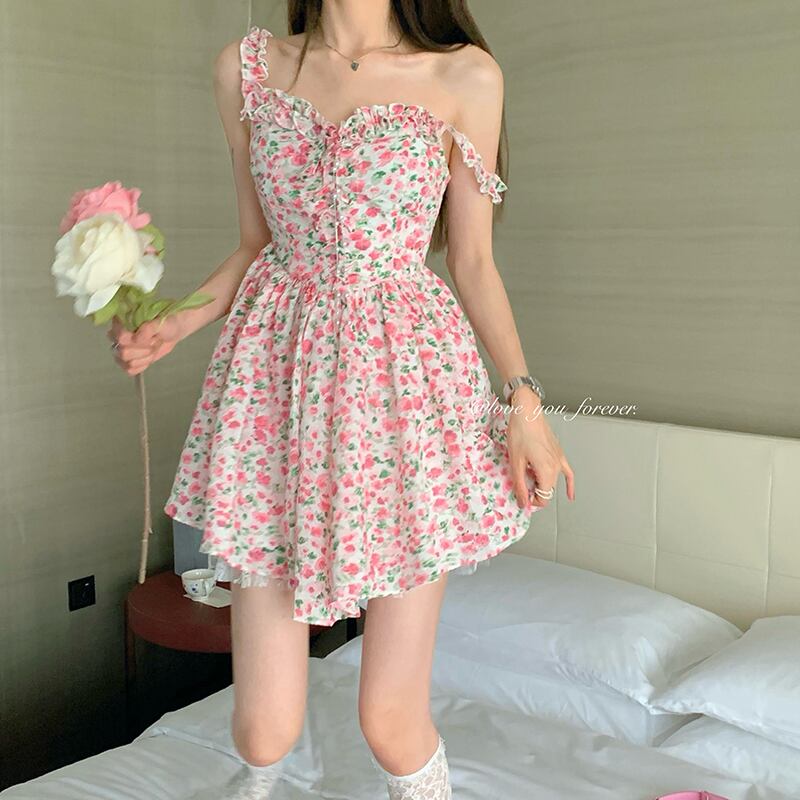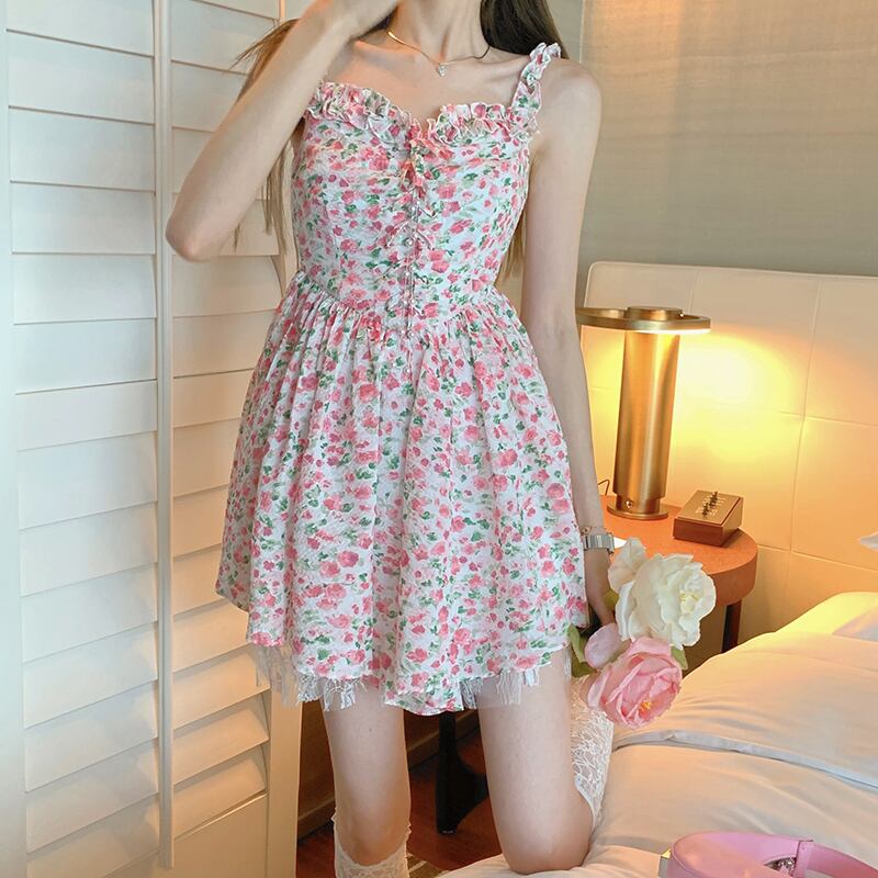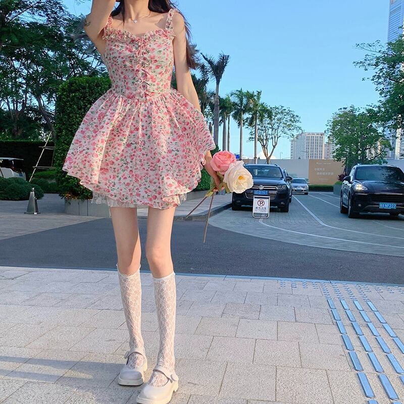 フローラルドレス ショートスカート サマー ピンク ふわふわ 夏物 花柄 YY-ファッション37414012832