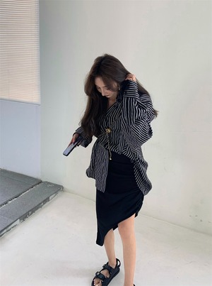 色:白のシャツ,ストライプシャツ,ハーフスカート7023#