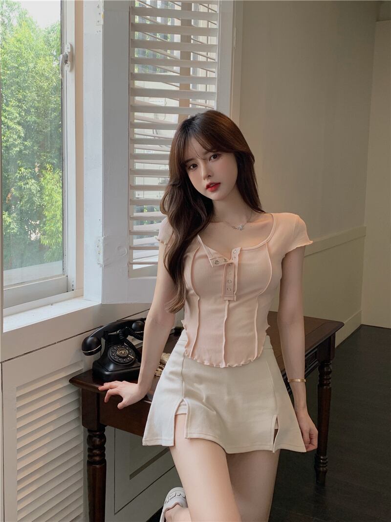 ソリッド カラーTシャツ シャツ トップス レディースサマーハイウェストスカート パンツ 夏物 ソリッドカラー YY-ファッション26747296854