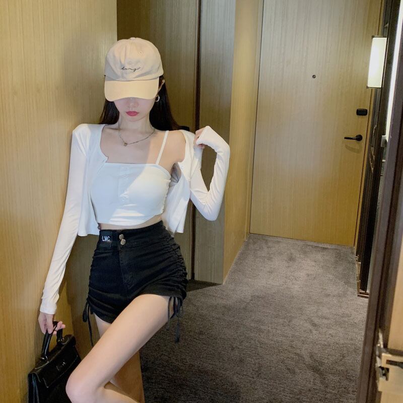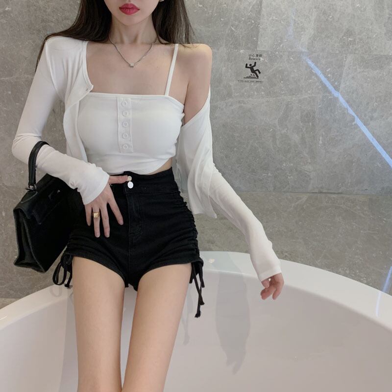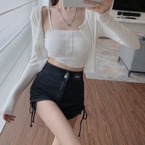色:ブラックストラップ+カーディガン,白いサスペンダー+カーディガン,ブラックスプリットスカート,黒の巾着ジーンズ