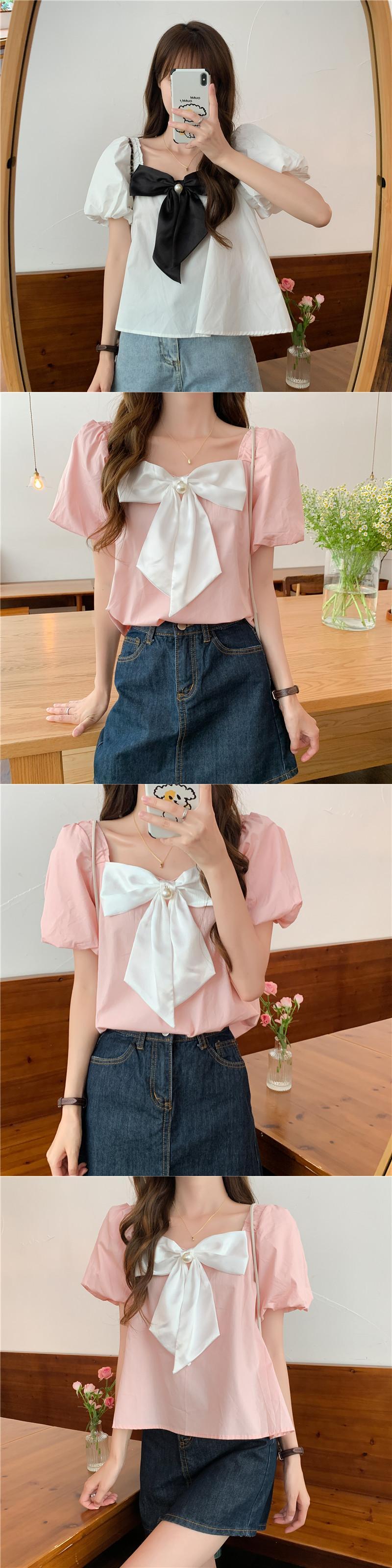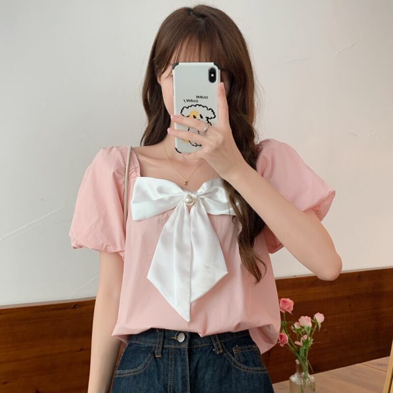 スタイルシャツ サマーリボンルーズトップス 大人ガーリー スウィート キュート カジュアル 夏物 YY-ファッション76240356596