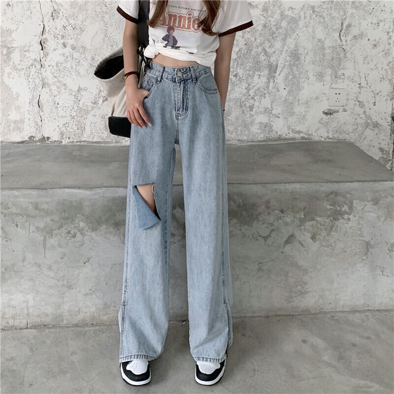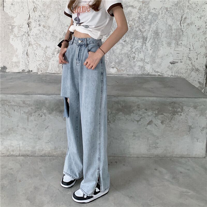 サマースタイルハイウェストウェストブルーワイドレッグジーンズ レディース 夏物 ワイドパンツ YY-ファッション73219619561