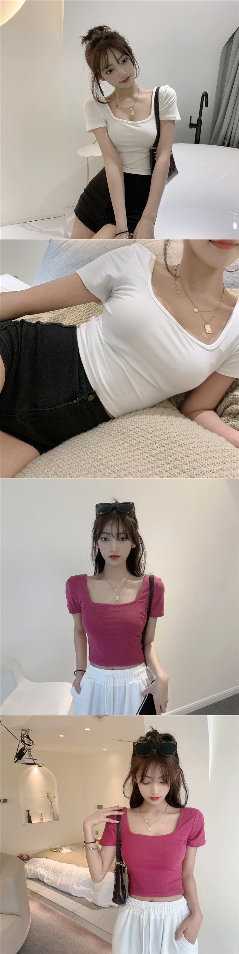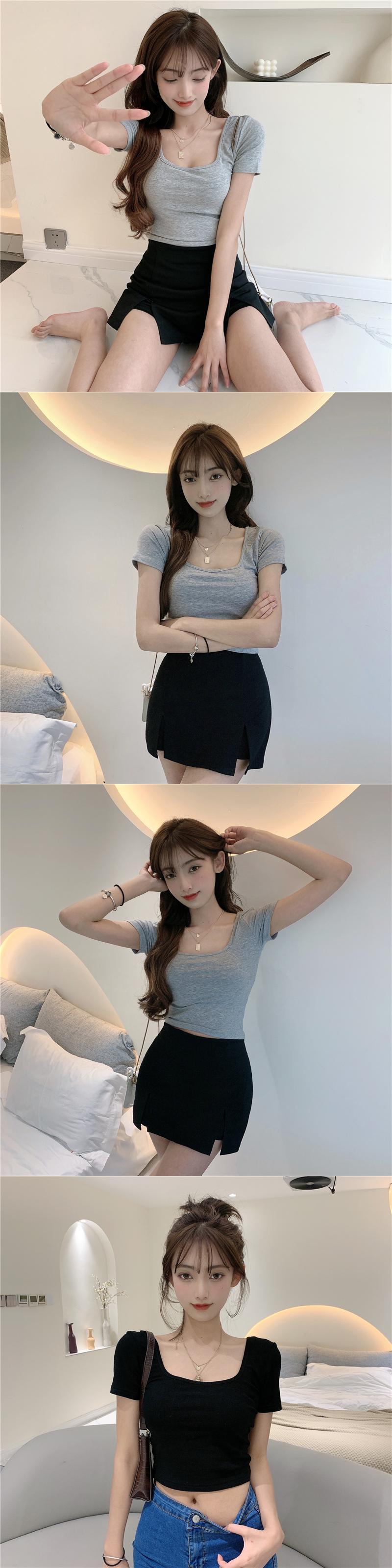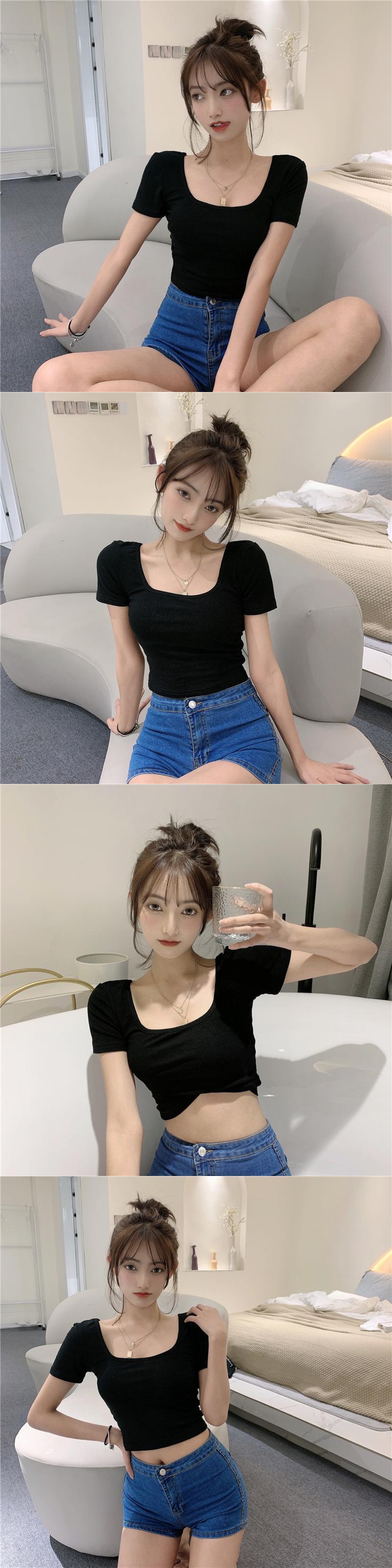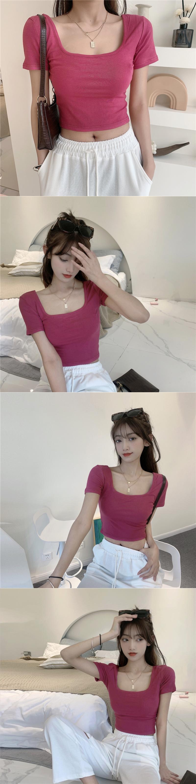 サマーTシャツ シャツ スリムショート半袖スリーブクロップドブラウス プルオーバー ハーフスリーブ 夏物 スクウェア YY-ファッション59372322627