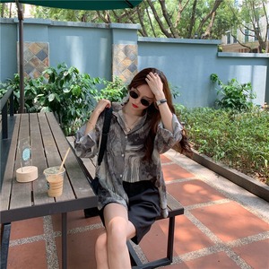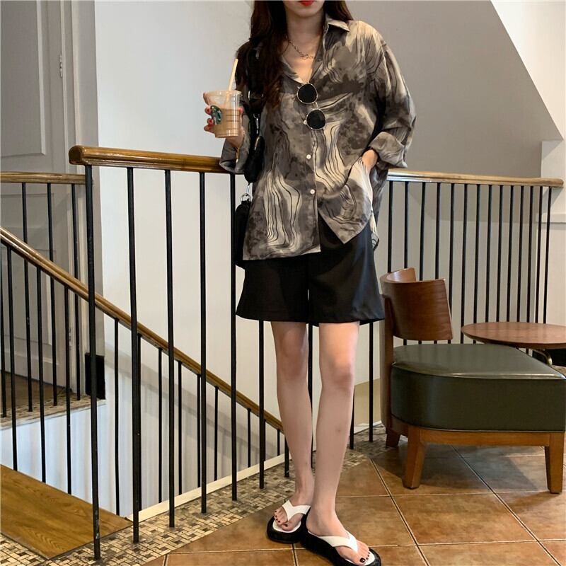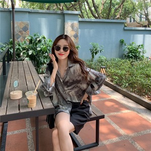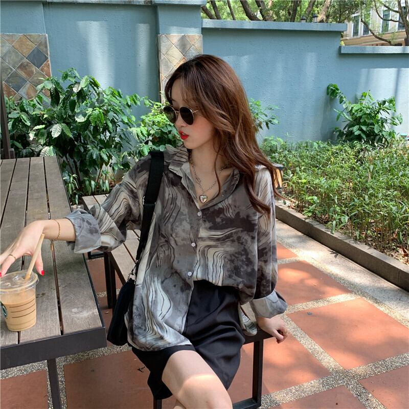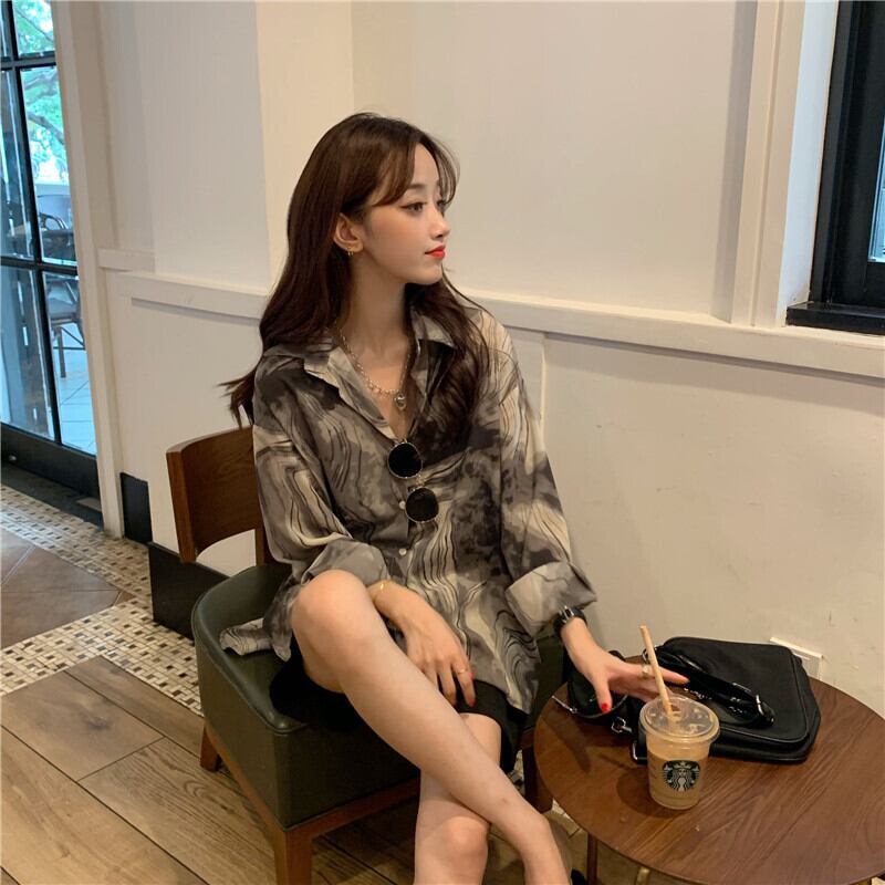 スタンダードプリントシャツ レディーススプリングオータムスタイルルーズ ロング レトロ 春物 秋物 YY-ファッション5239974230