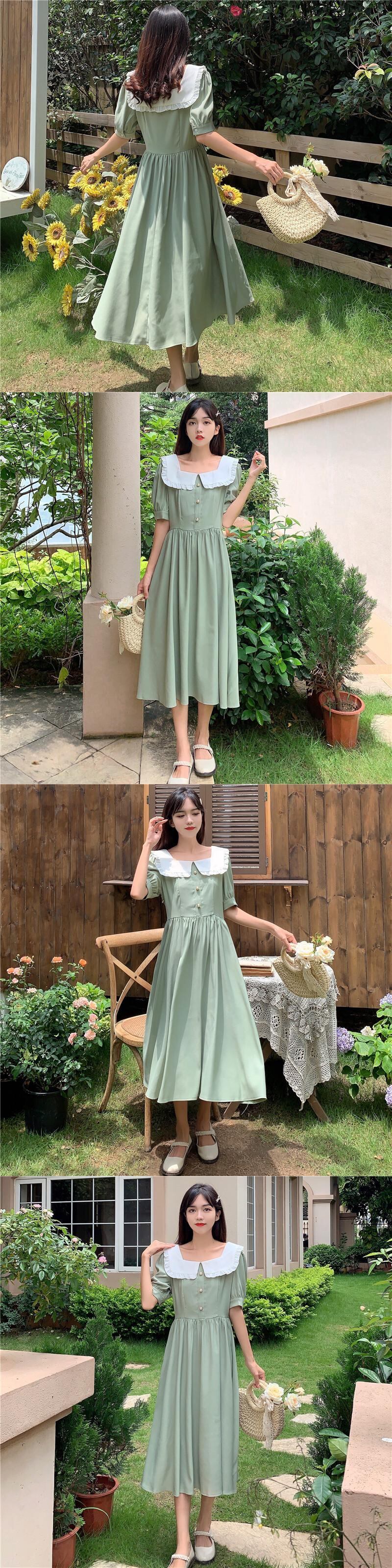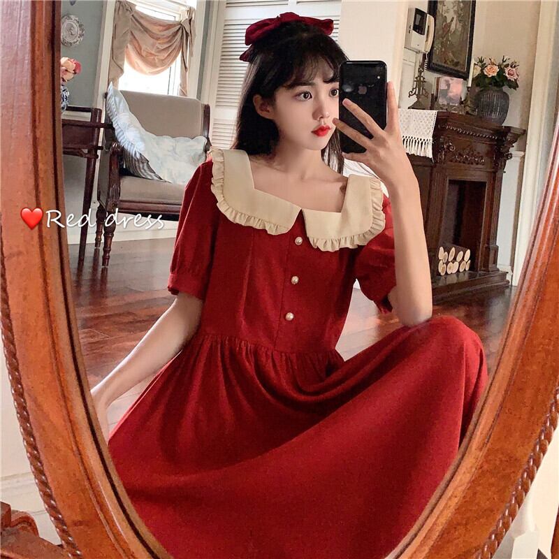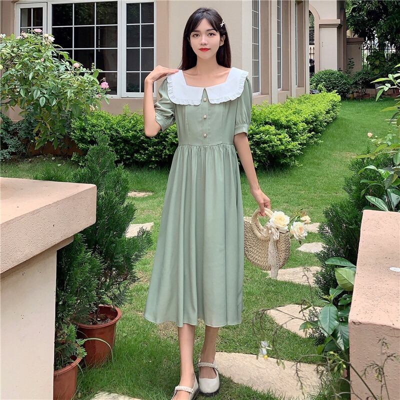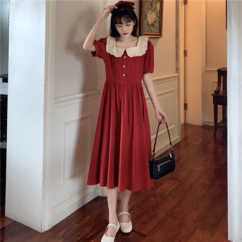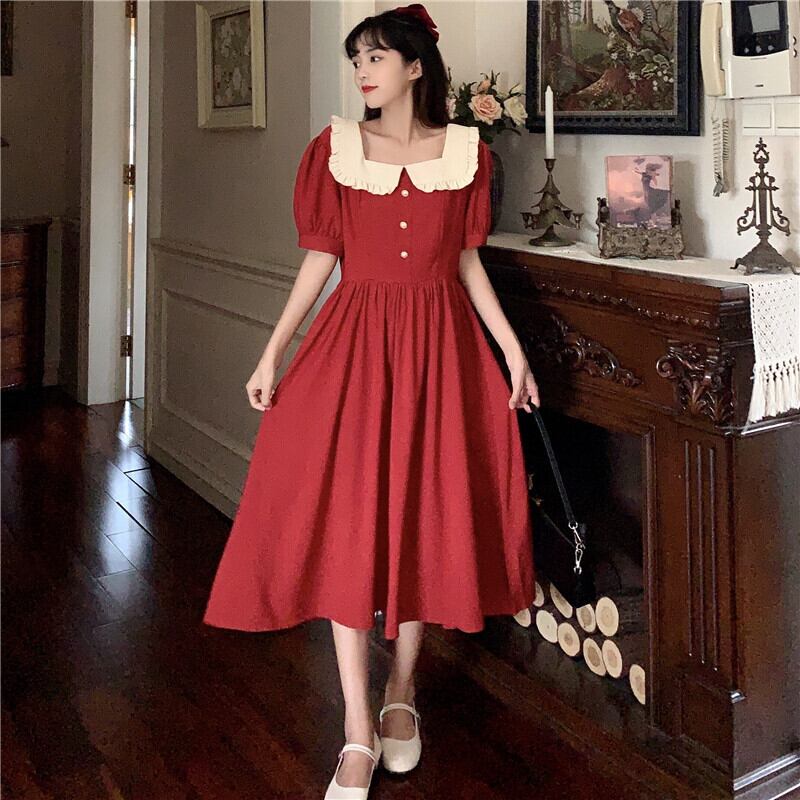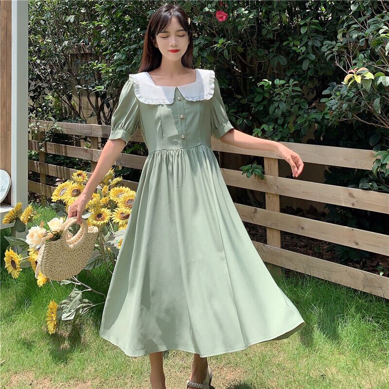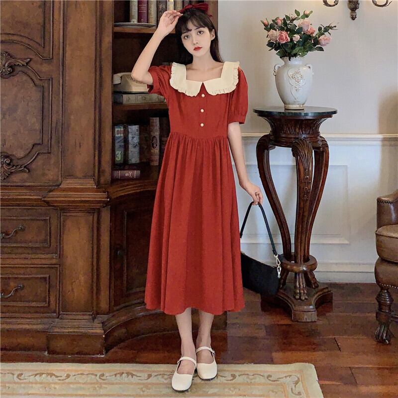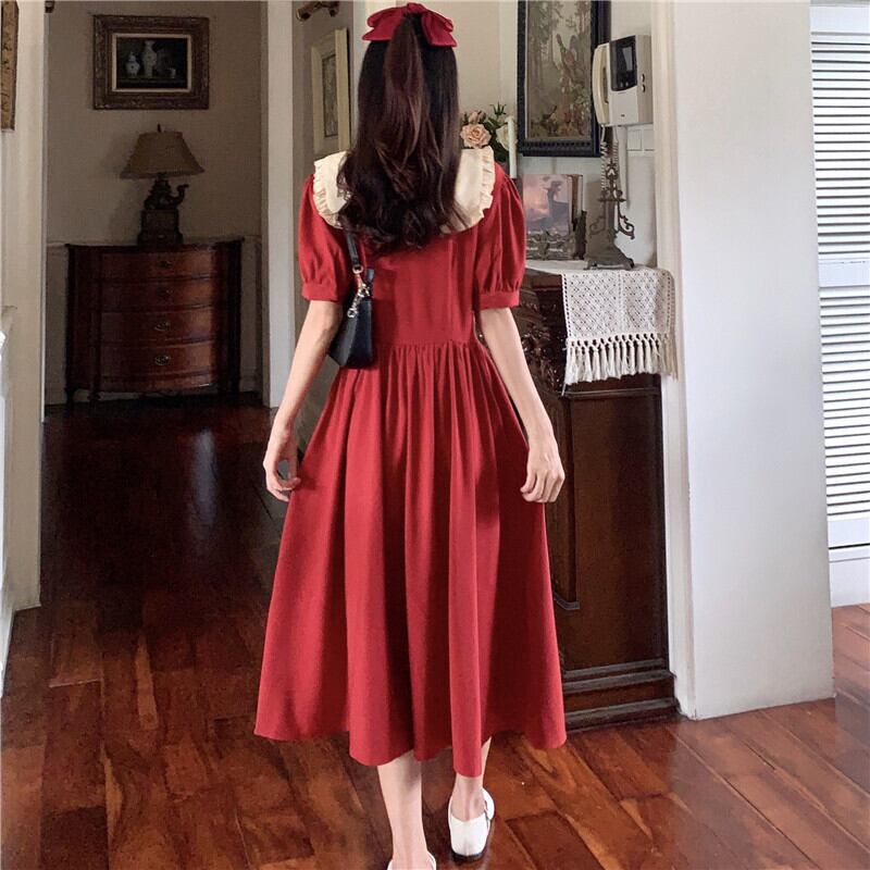 カラースタイルロングスカート サマースタンダードドレス レトロ レース 夏物 スクウェア YY-ファッション76121829364