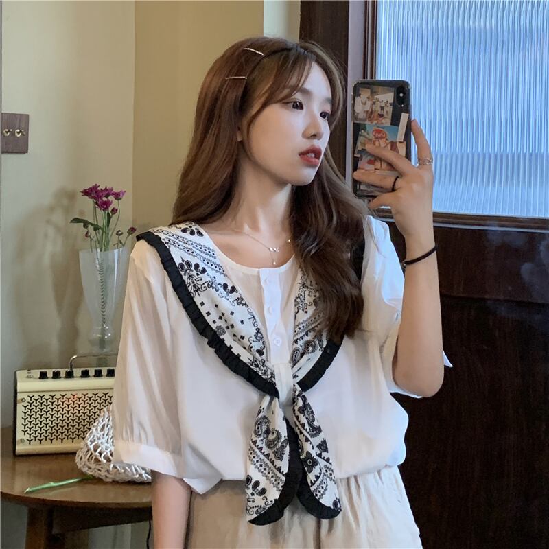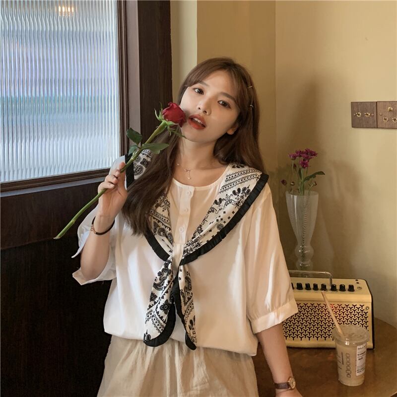 ホワイトシャツ サマースタンダードスタイルシフォントップス レトロ 夏物 YY-ファッション49069055857