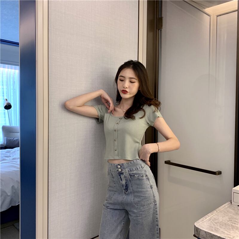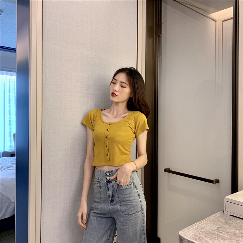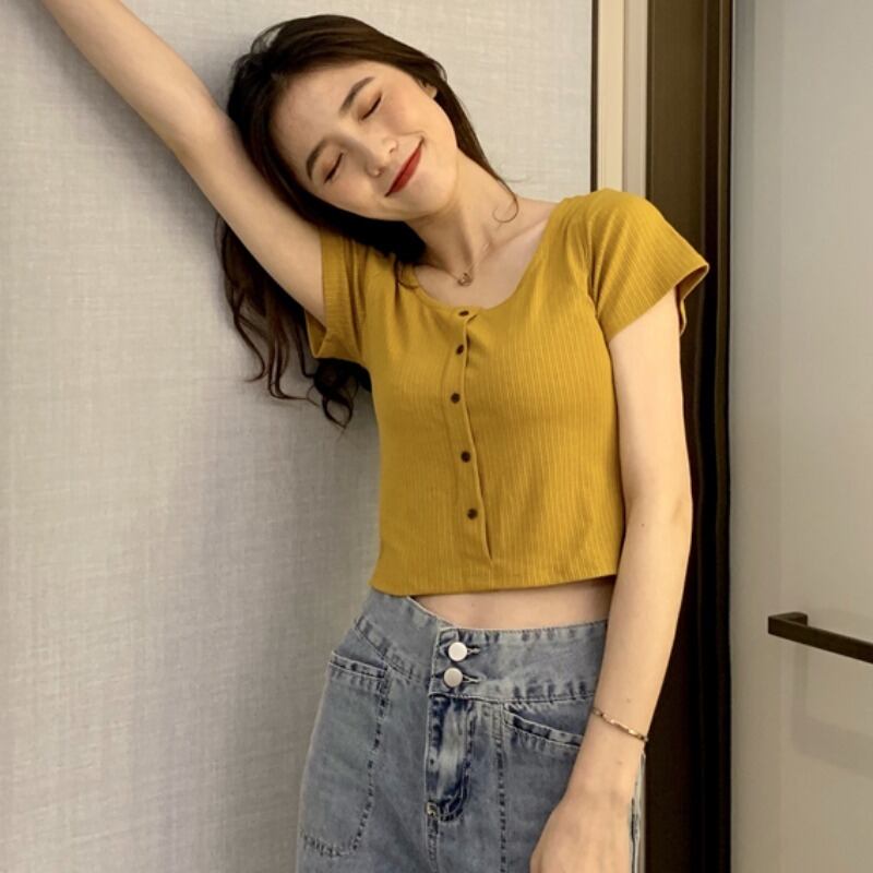 サマースタイル薄手レッドショートTシャツ トップス 夏物 YY-ファッション15642986823