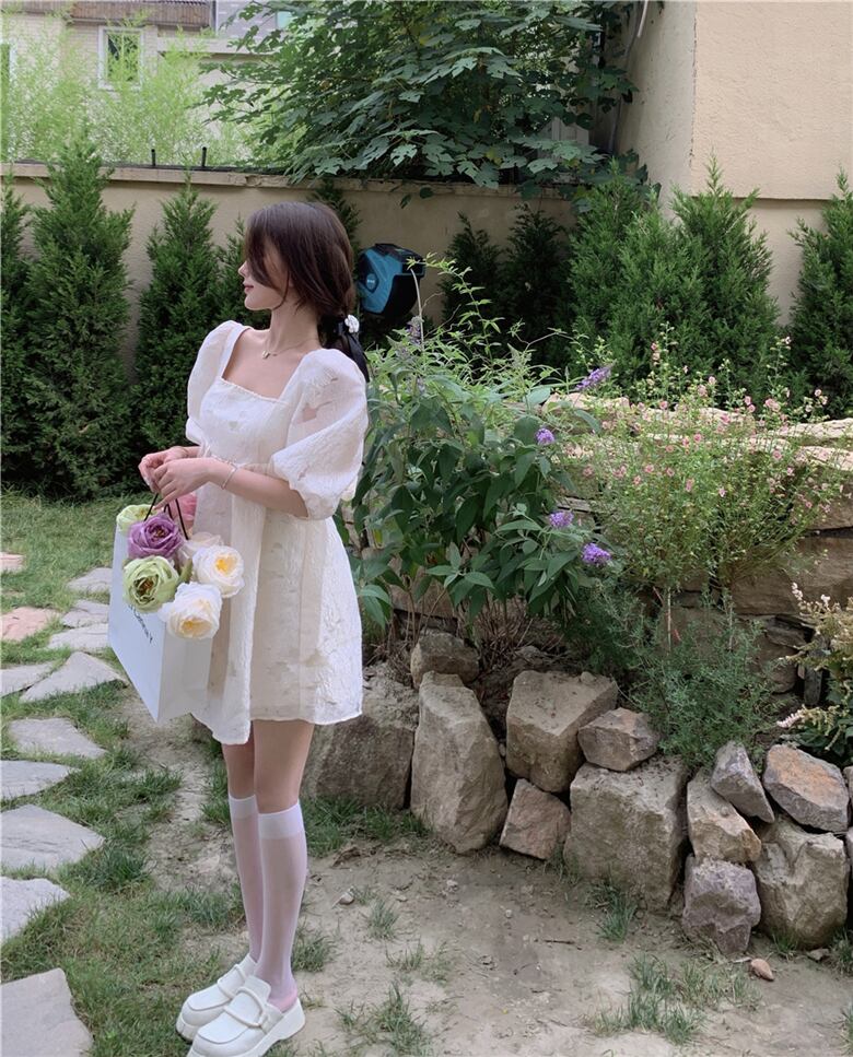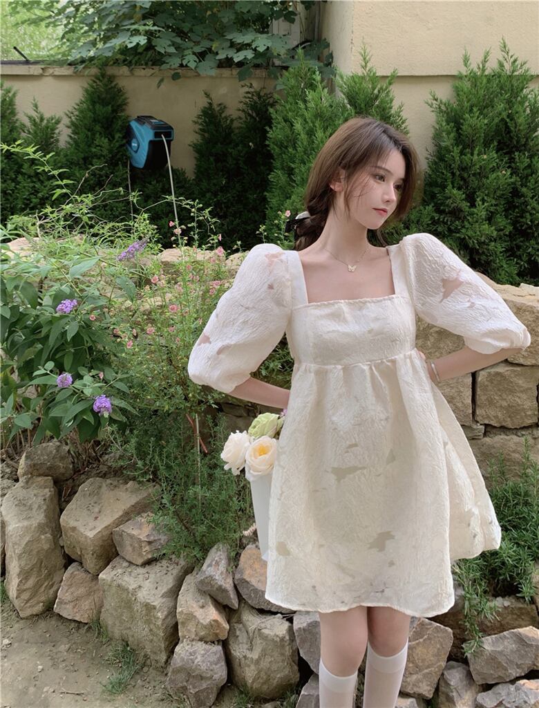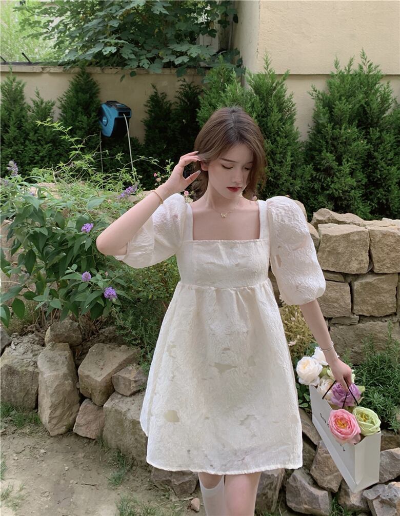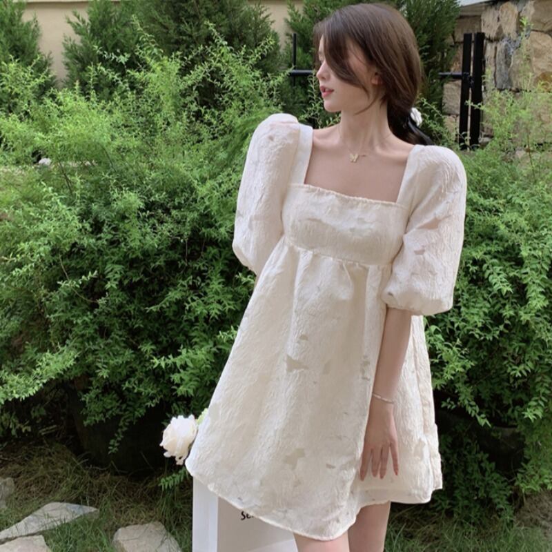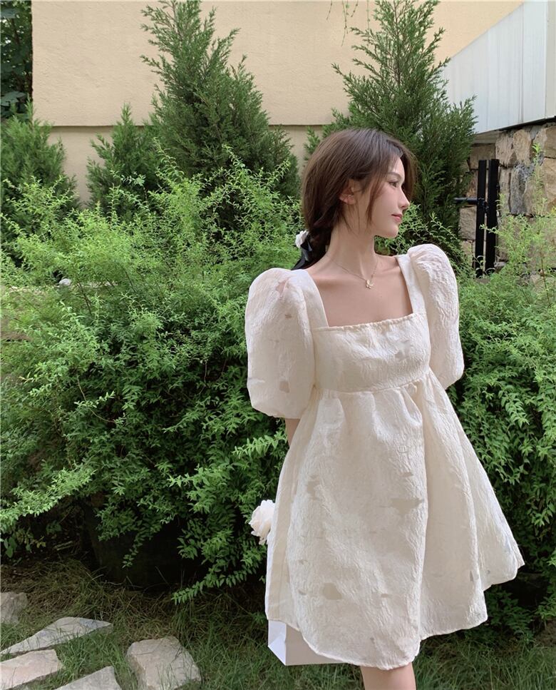 ドレス スリーブリボンショートスカート サマーカラー半袖 ハーフスリーブ 夏物 スクウェア YY-ファッション93319502318