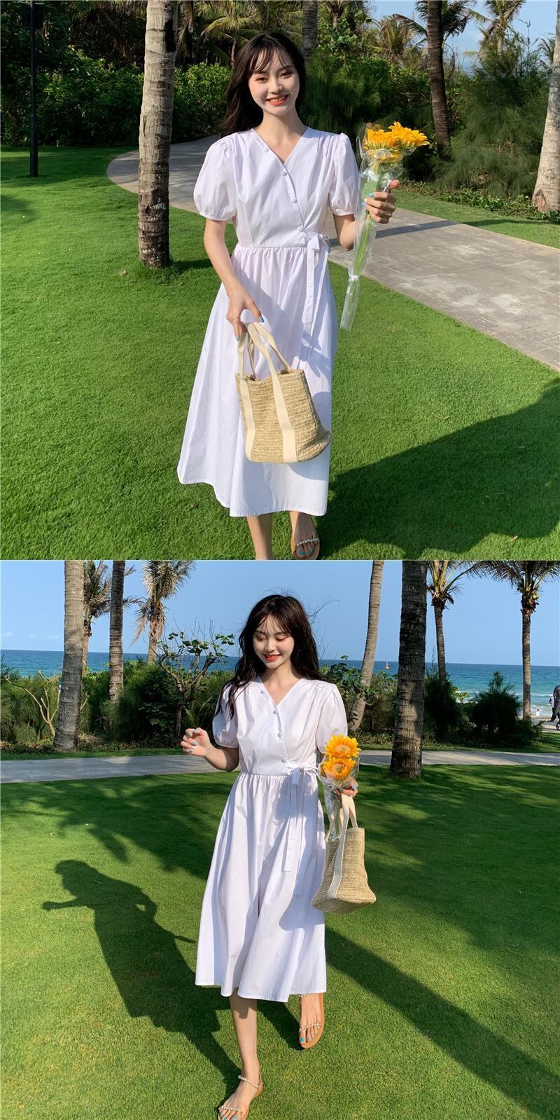 スタイルドレス サマーVネックスリーブウェストスカート 夏物 YY-ファッション37592016643