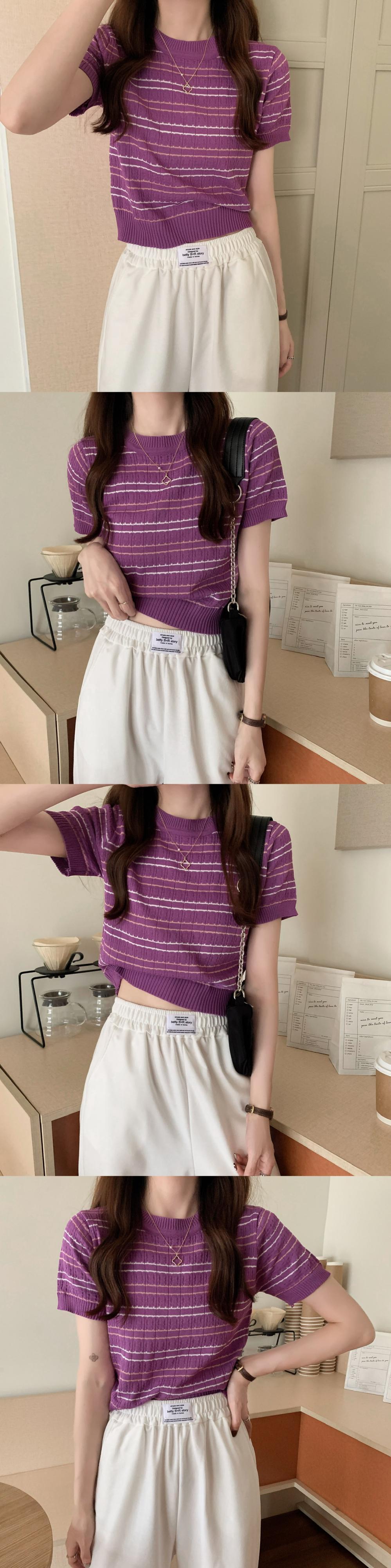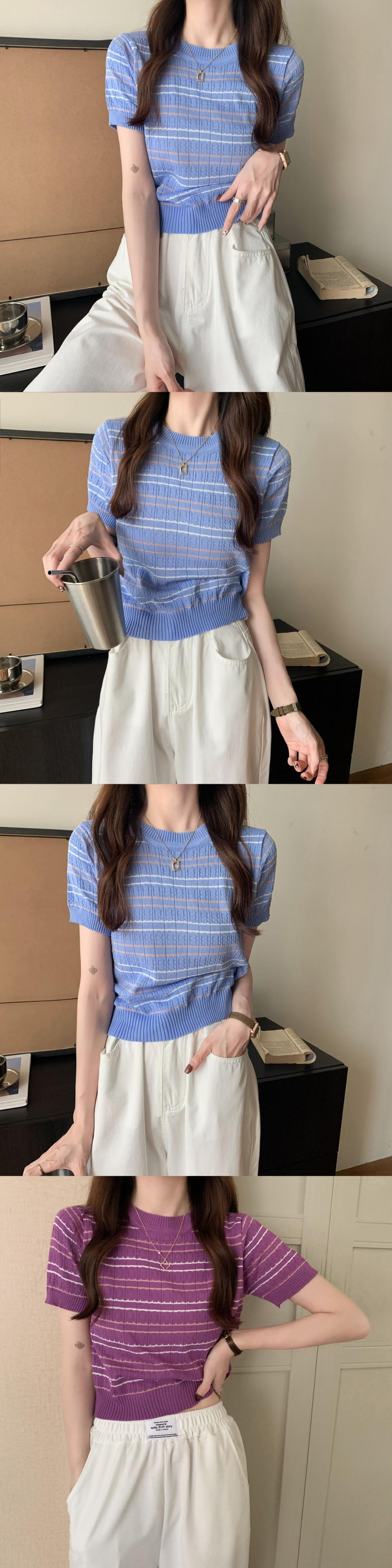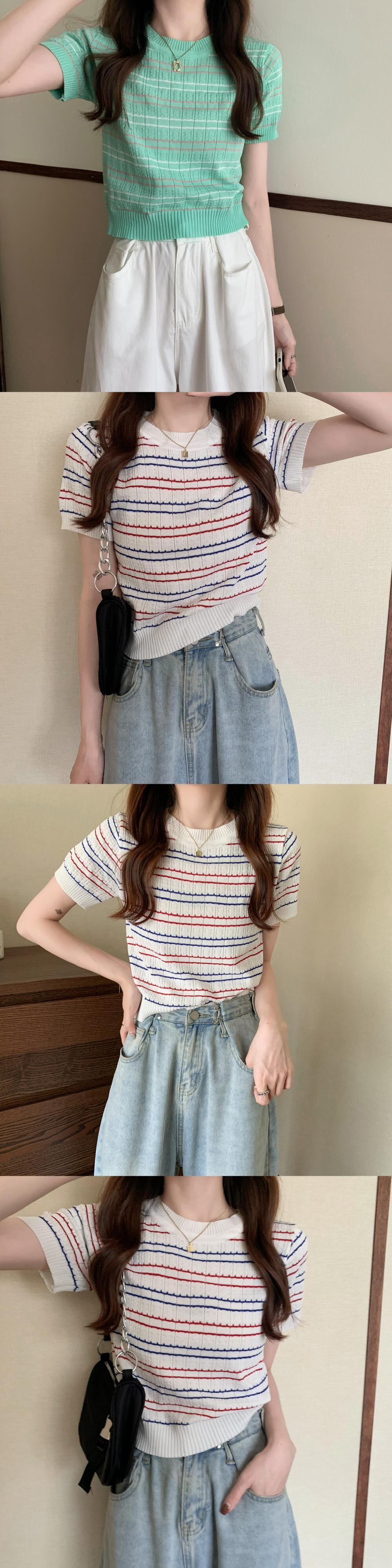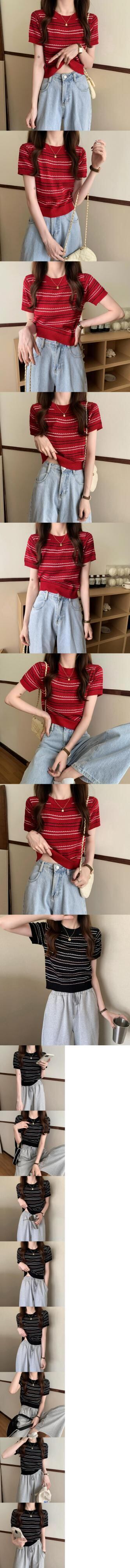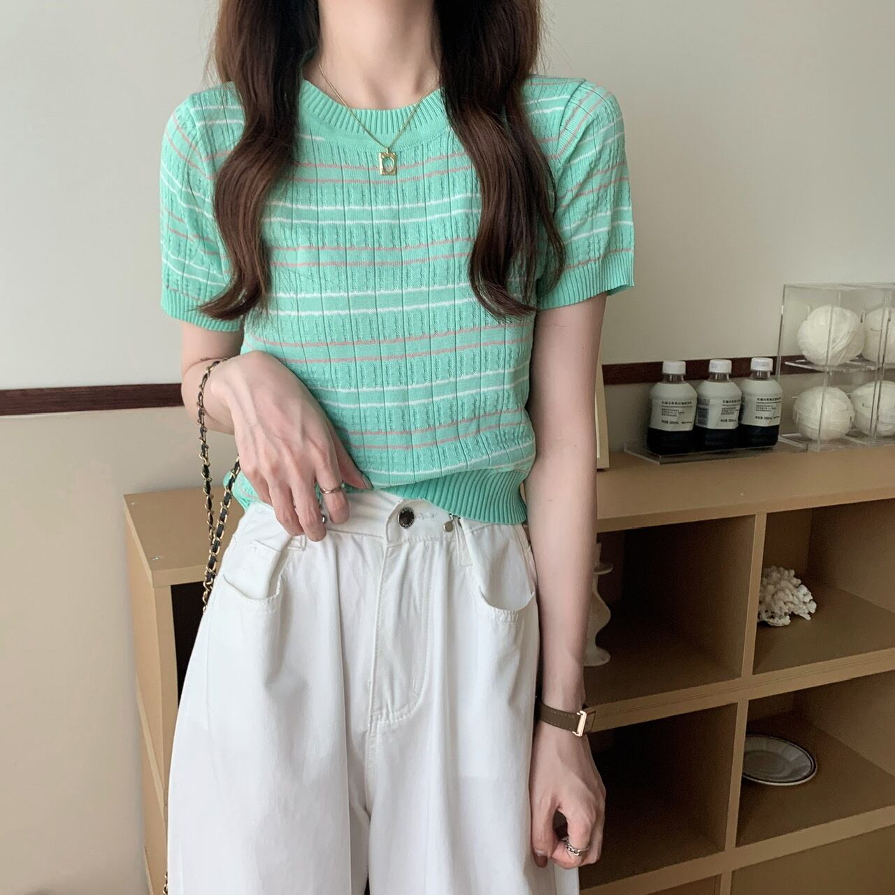サマールーズショートストライプトップス 薄手ニットTシャツ 夏物 YY-ファッション19258888623