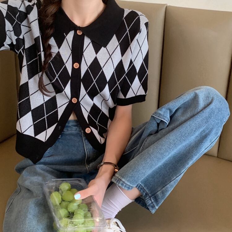 カーディガンセーター レディースサマー薄手スタイルカラークロップドトップス 夏物 YY-ファッション87999794783