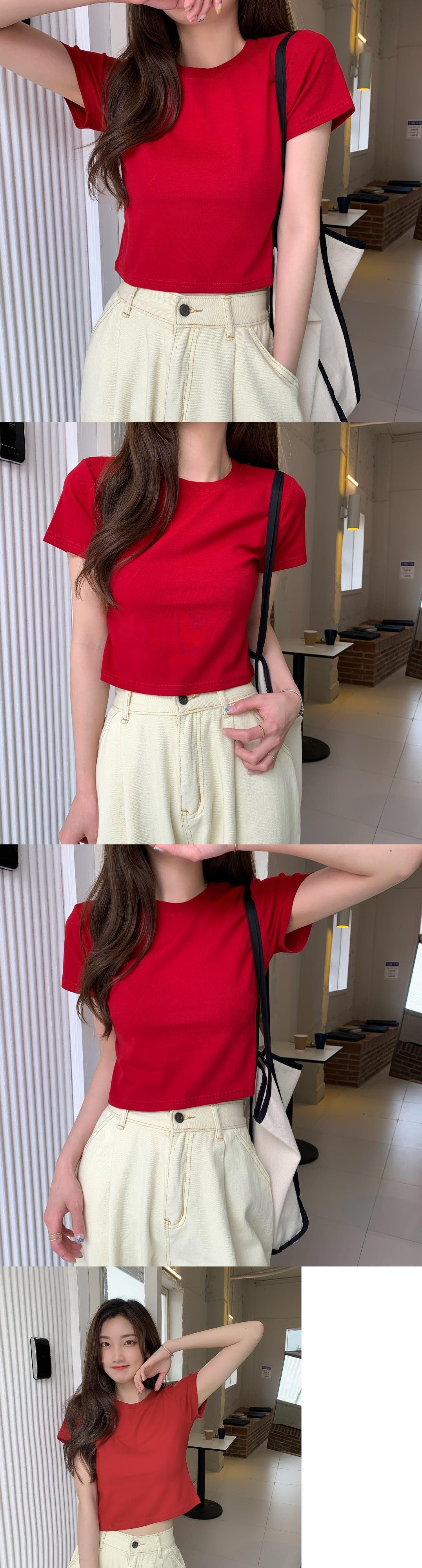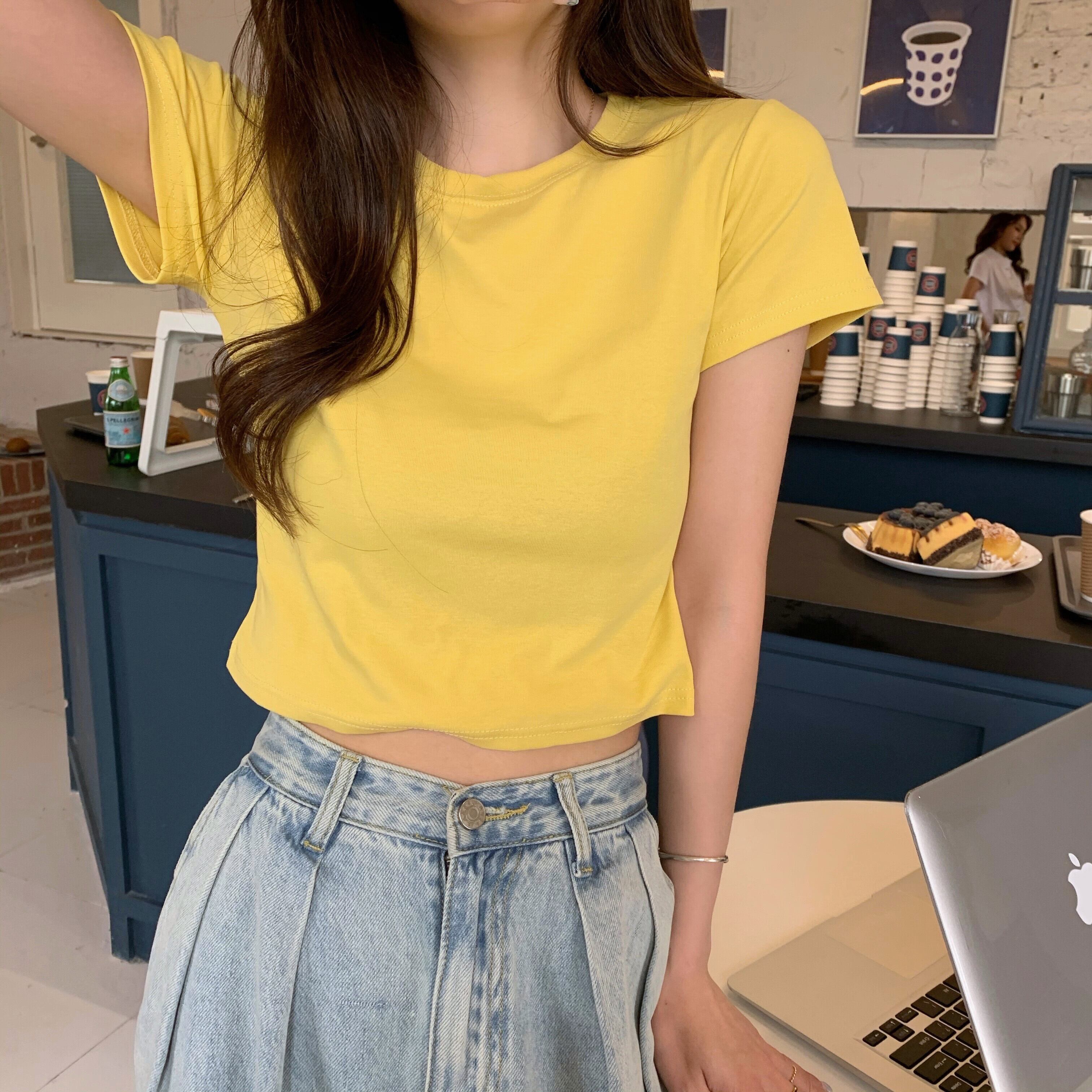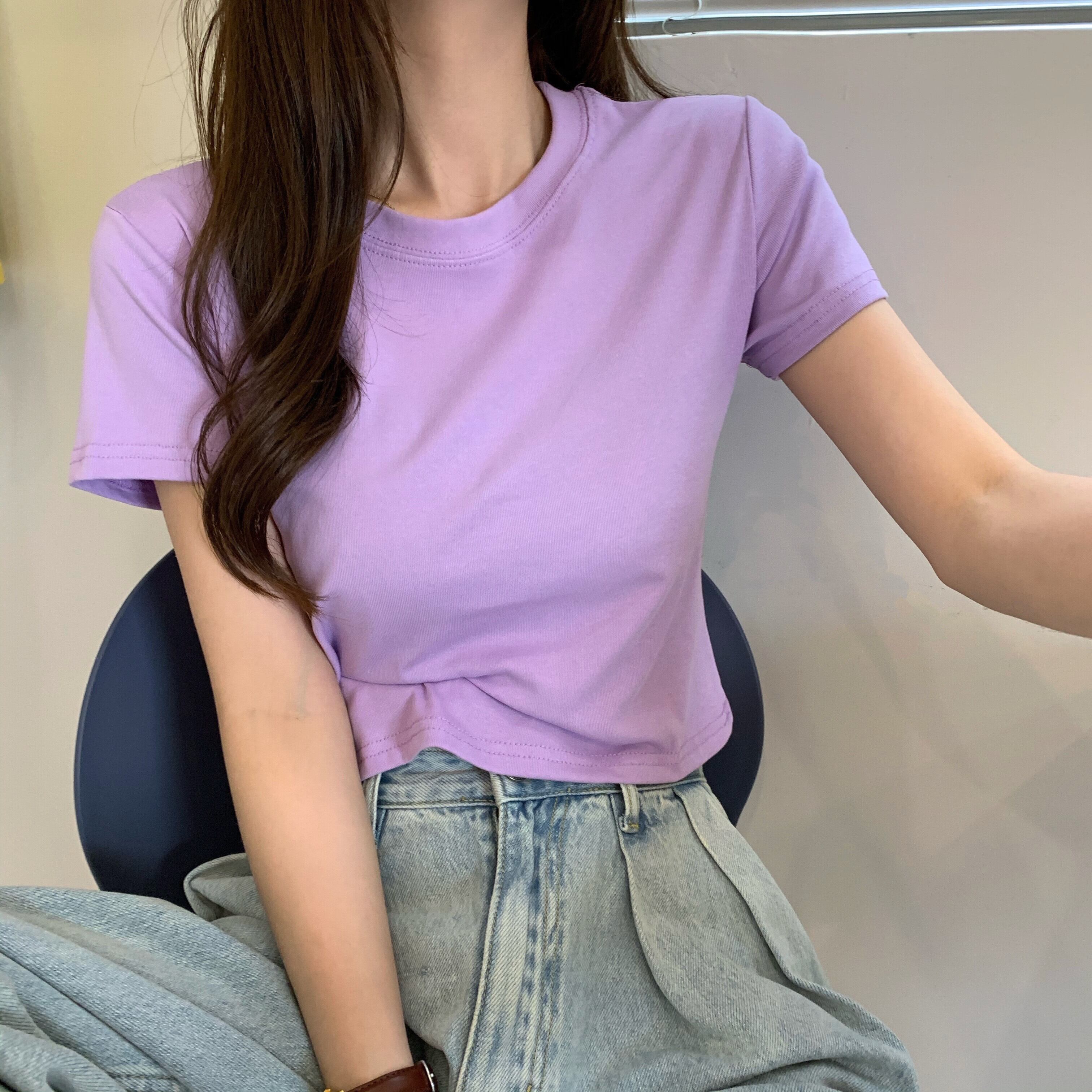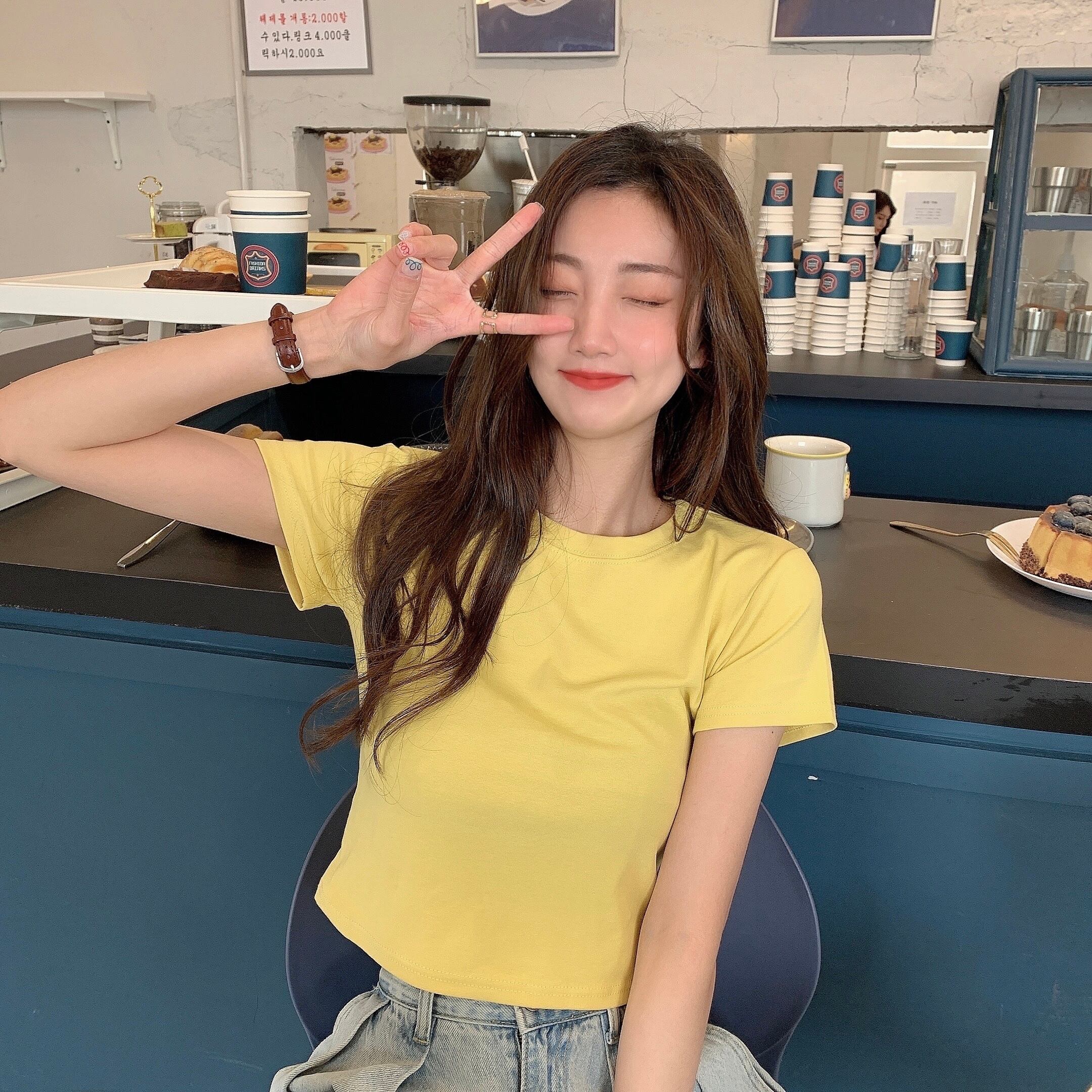 サマーカラーベーシックラウンドネックショートトップス Tシャツ 夏物 Oネック YY-ファッション43478243162