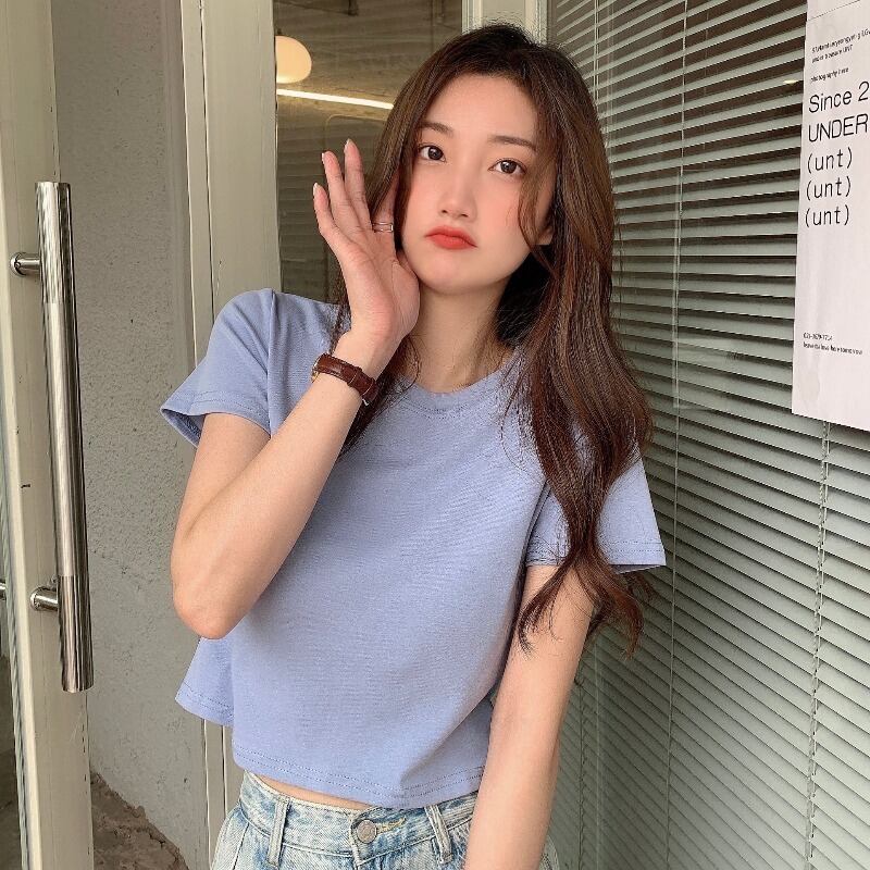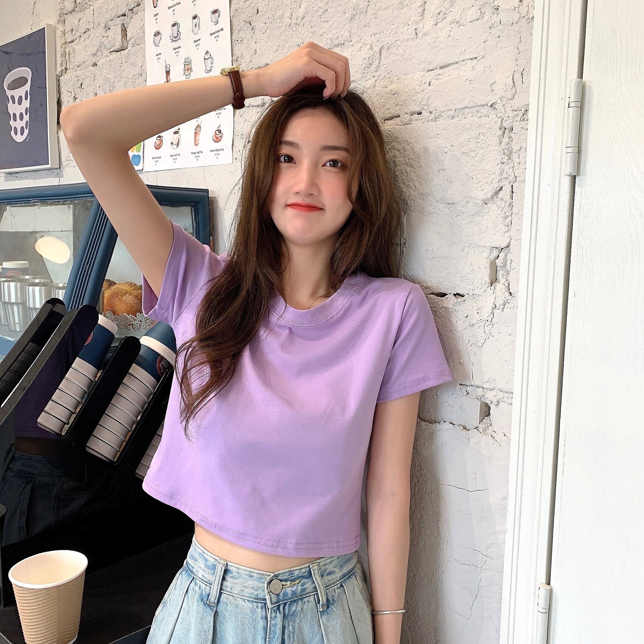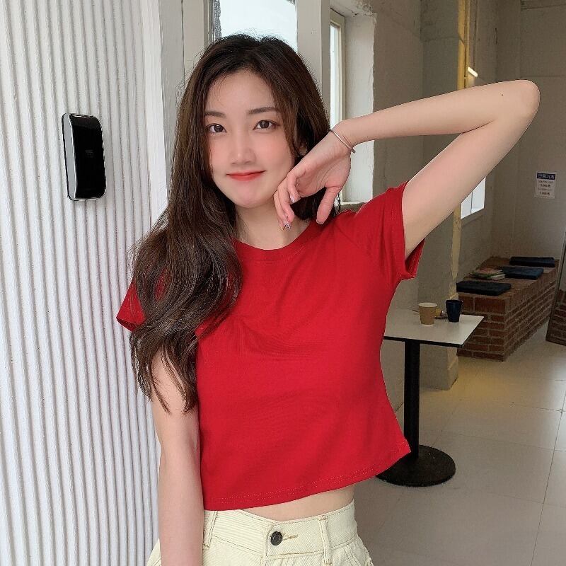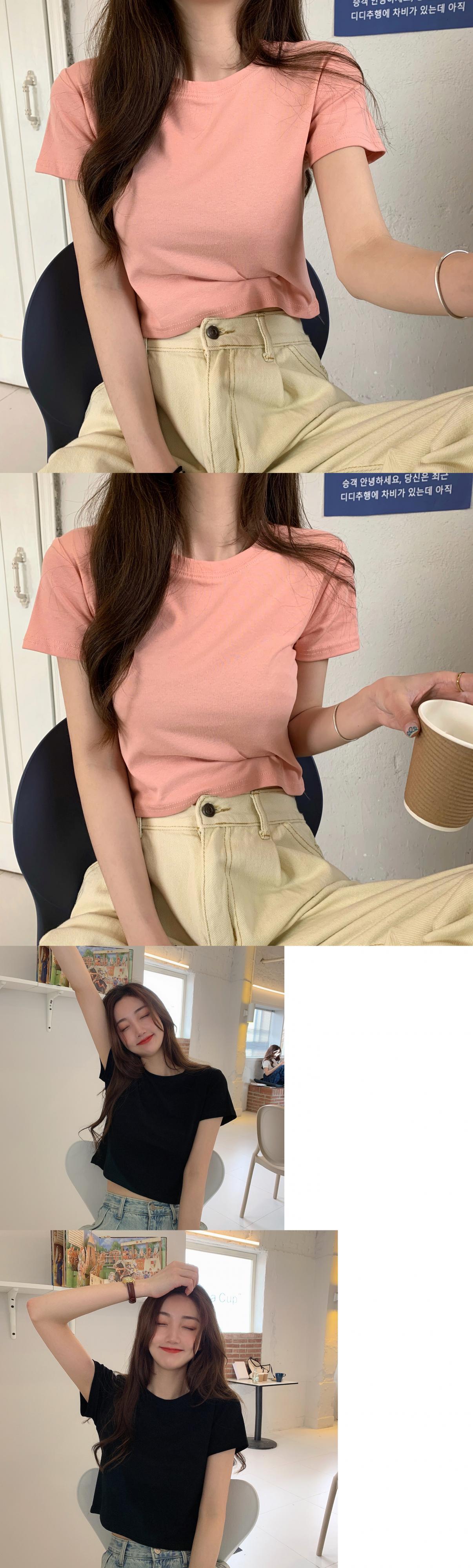 サマーカラーベーシックラウンドネックショートトップス Tシャツ 夏物 Oネック YY-ファッション43478243162