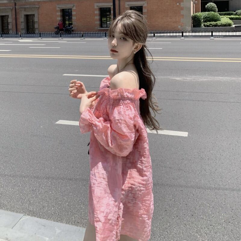 ドレス ルーズスリムスカート サマーショート ロング ピンク 夏物 YY-ファッション58468638353