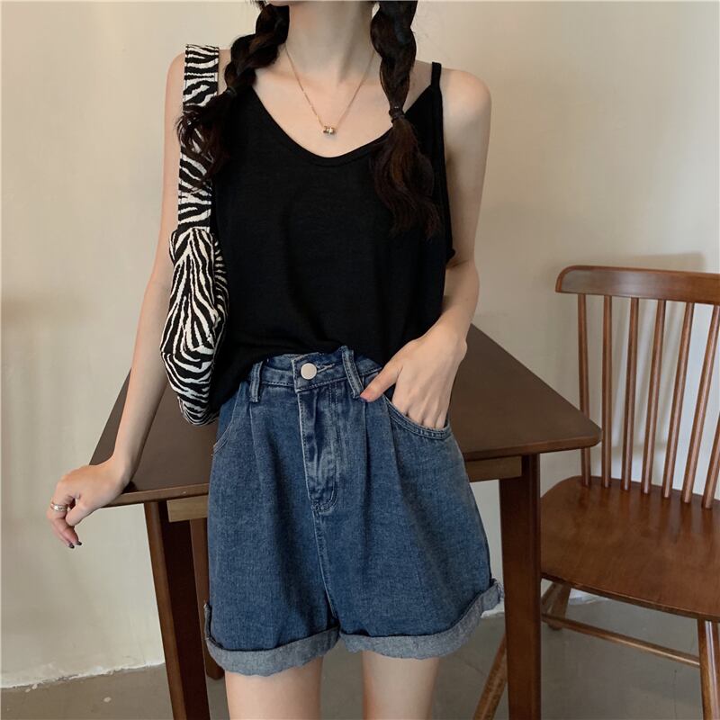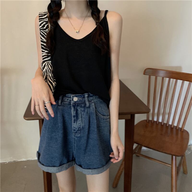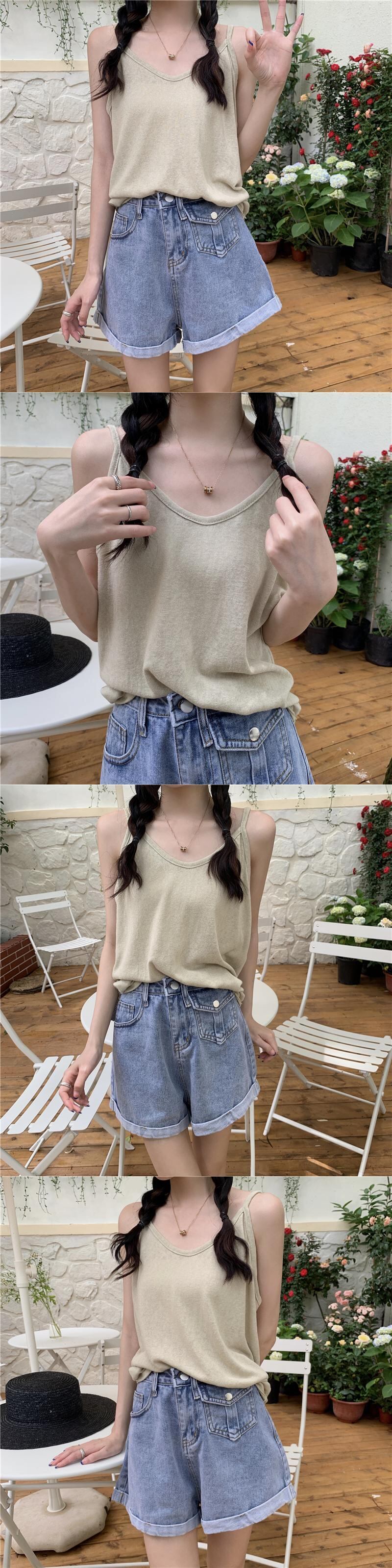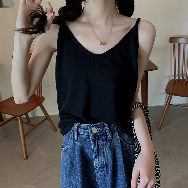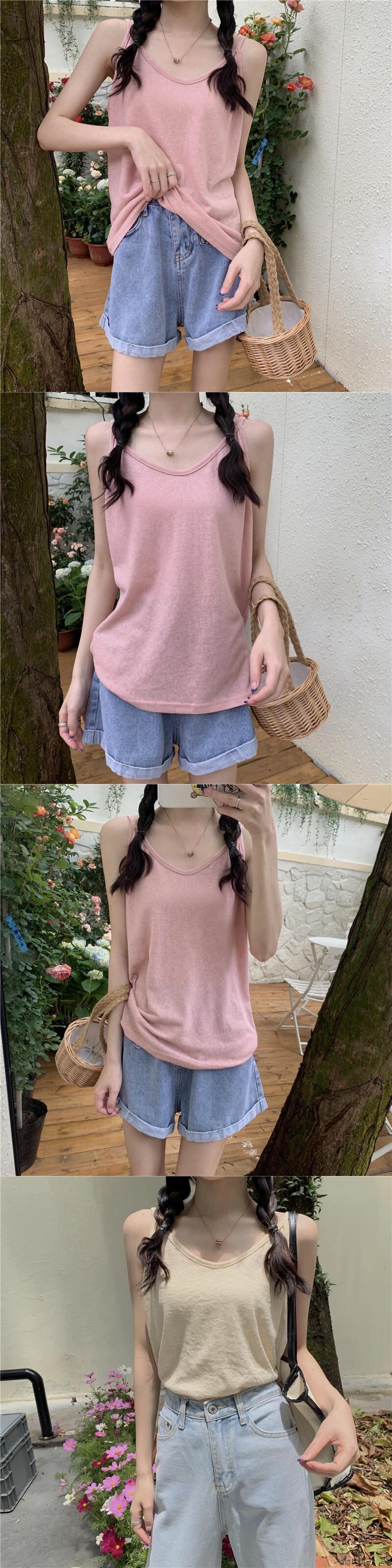 ホワイトサマールーズVネックノースリーブシャツ トップス 夏物 YY-ファッション78764365806