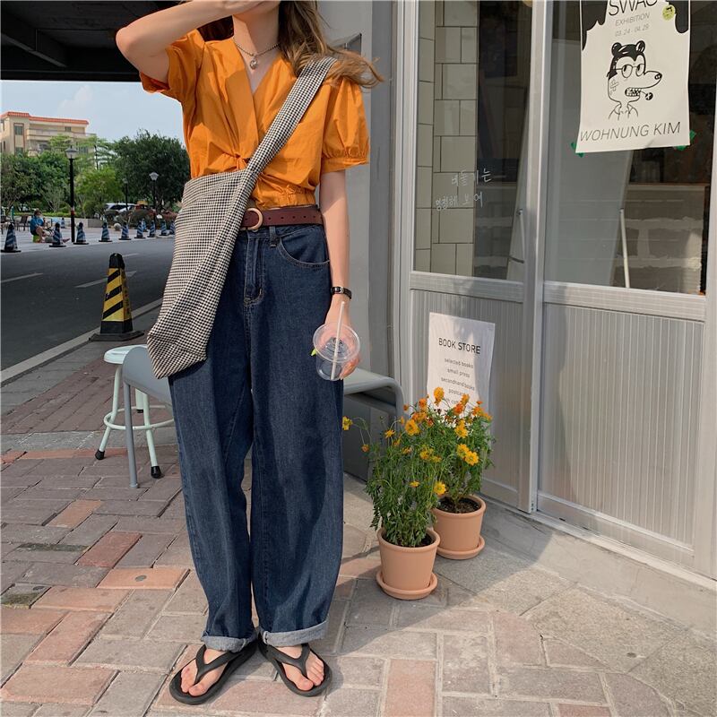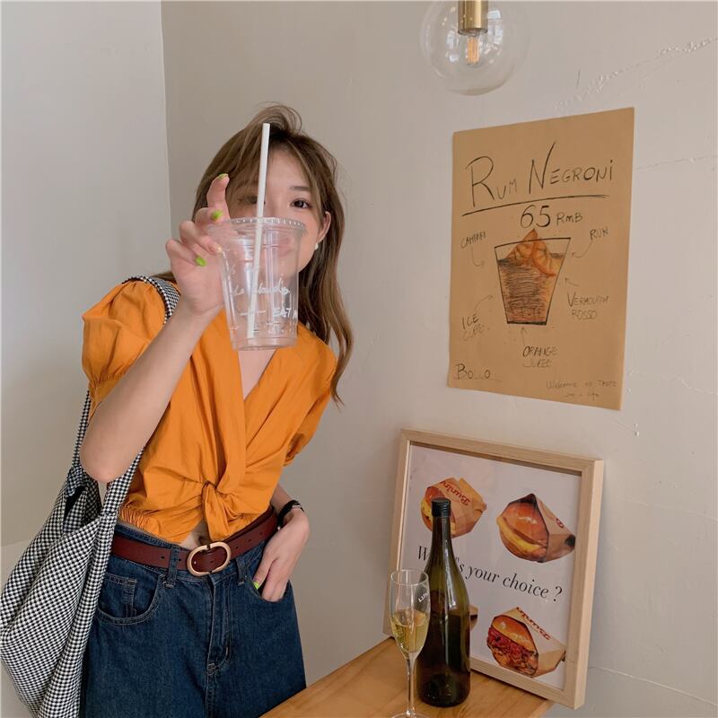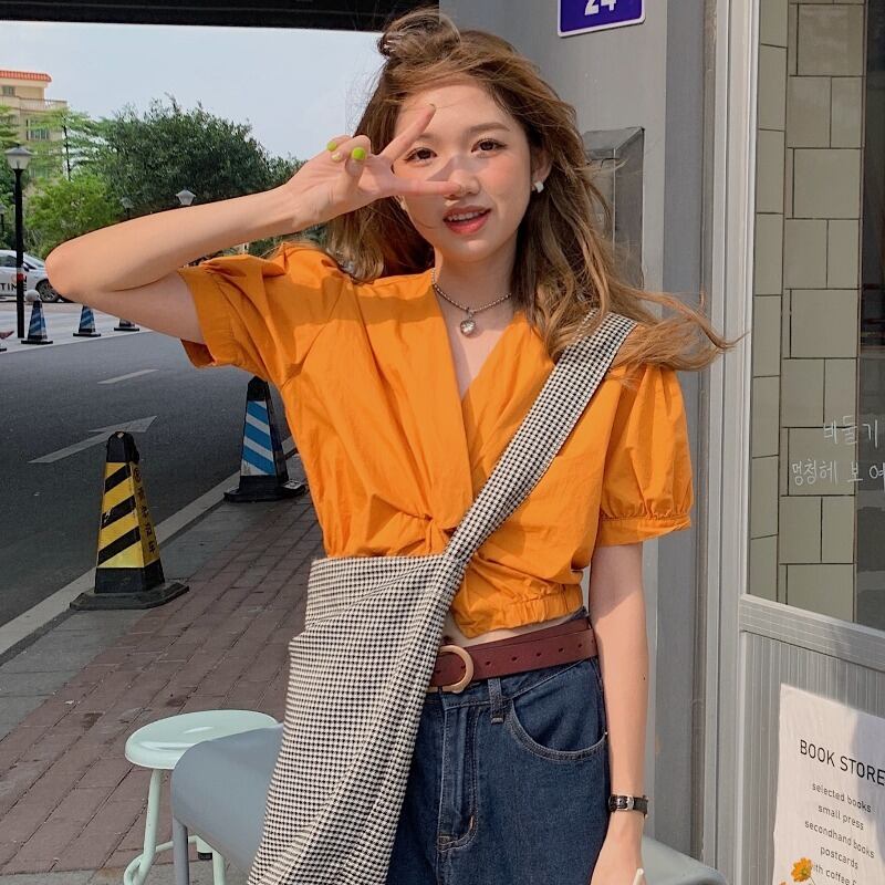 Vネックスリーブショートトップス ドレス サマーシャツ 夏物 YY-ファッション91169147433