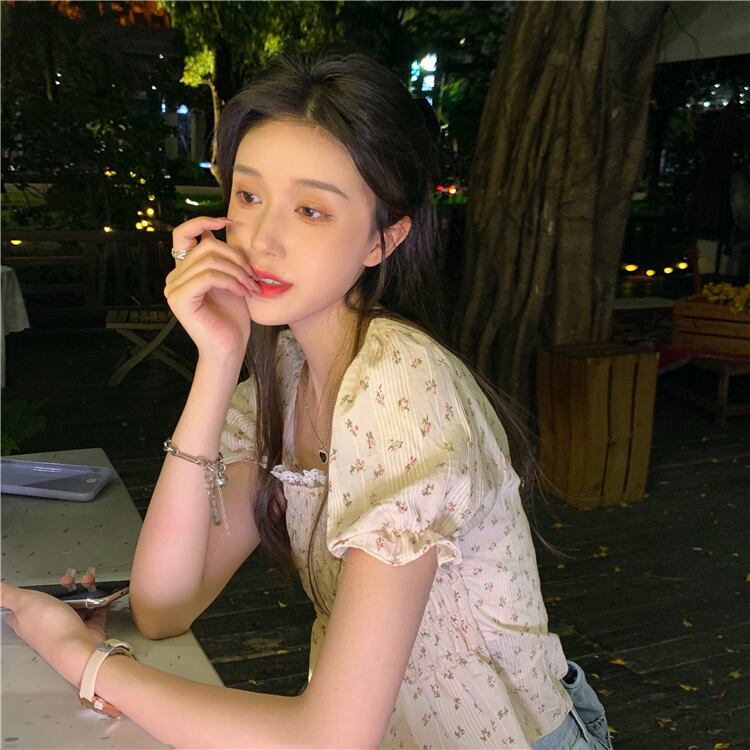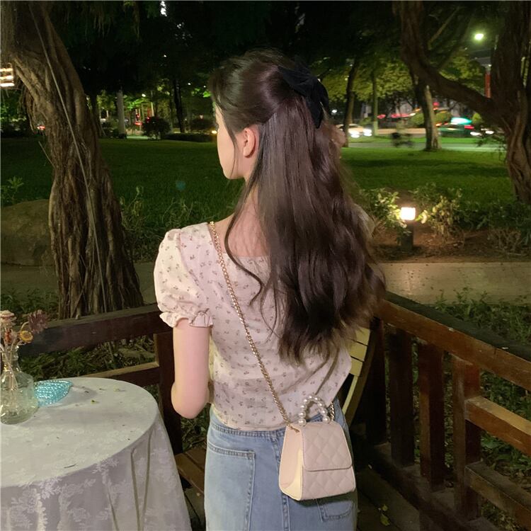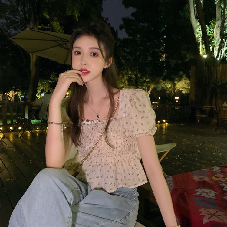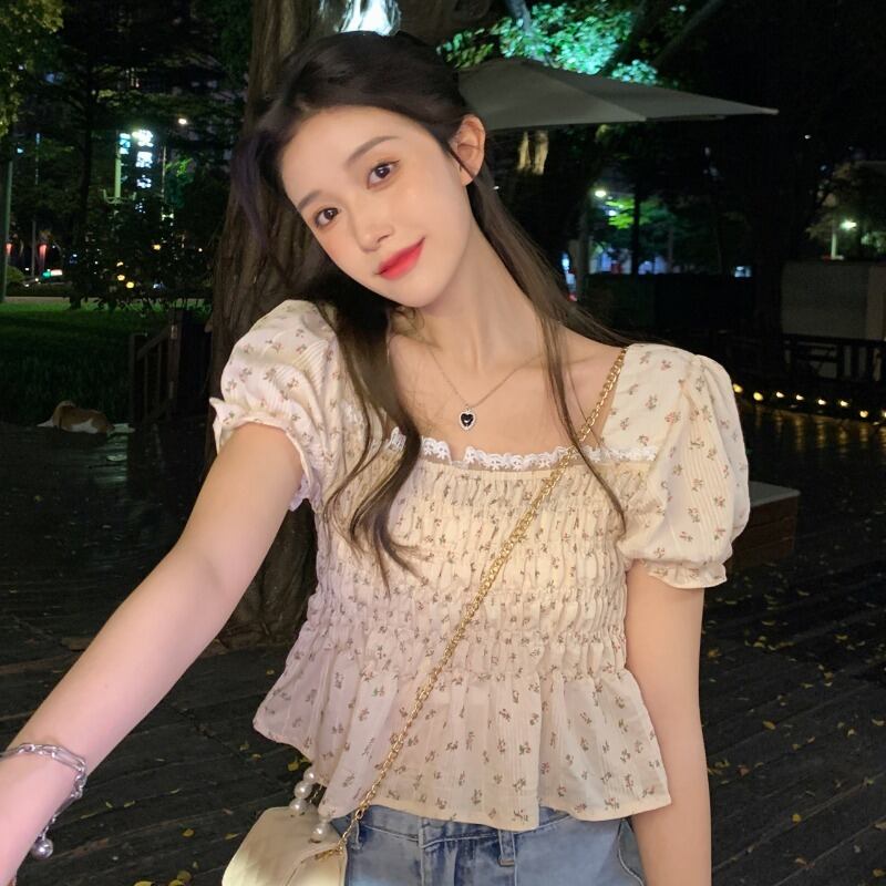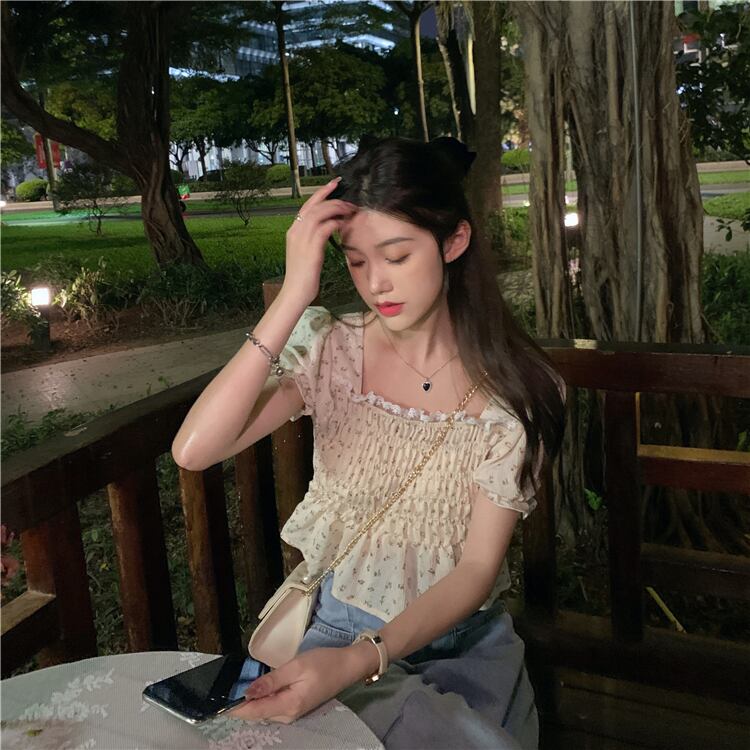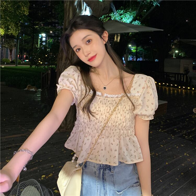 スリーブシフォンシャツ サマースリム薄手ショートブラウス レディース 大人ガーリー スウィート キュート カジュアル 夏物 スクウェア YY-ファッション17707514287