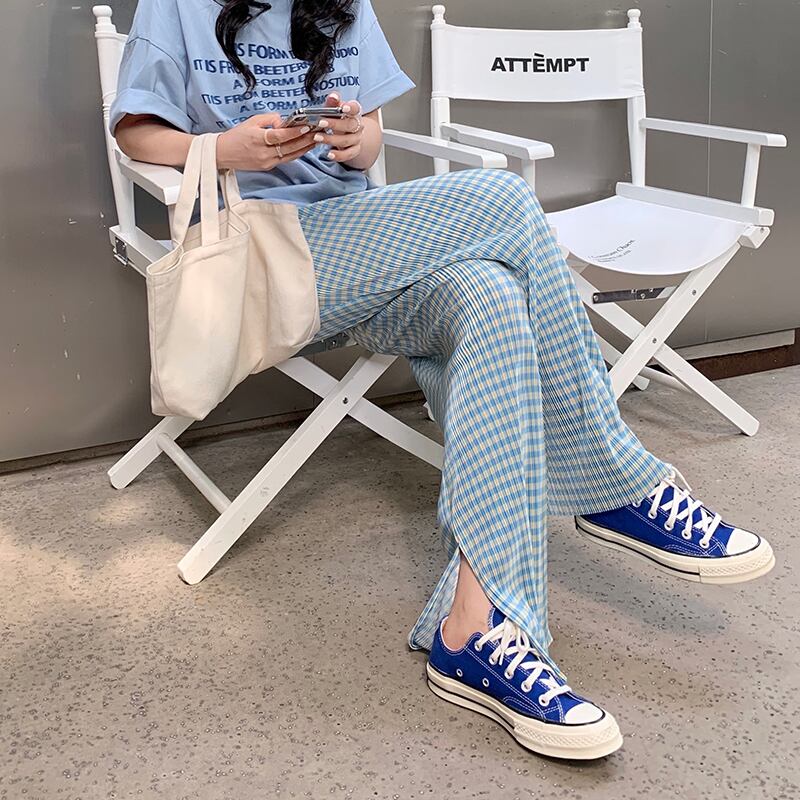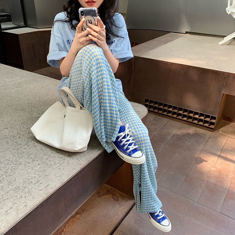 パンツ 格子柄ルーズカジュアルレディースサマースタイルハイウェストウェスト 夏物 YY-ファッション1758242401