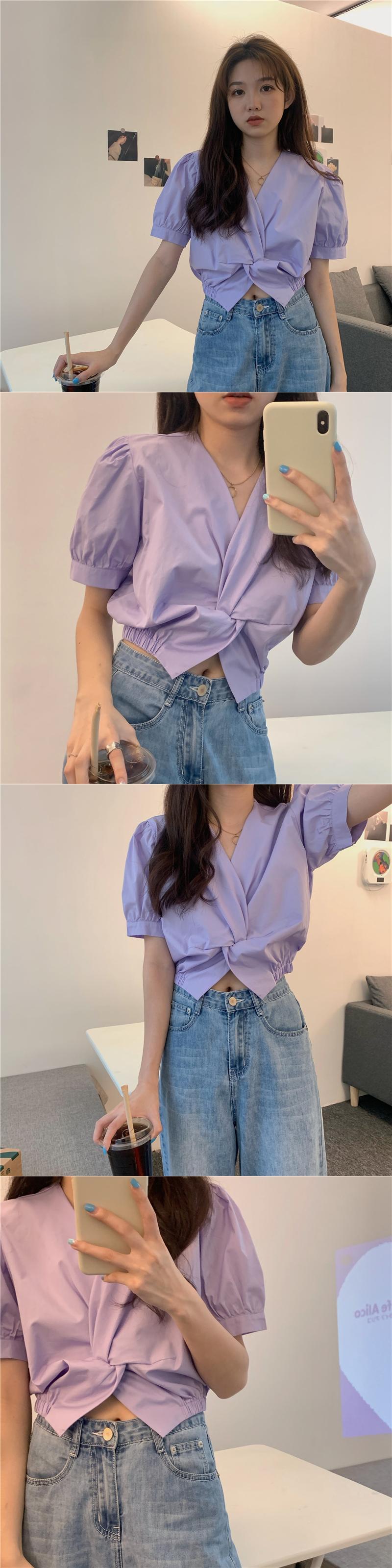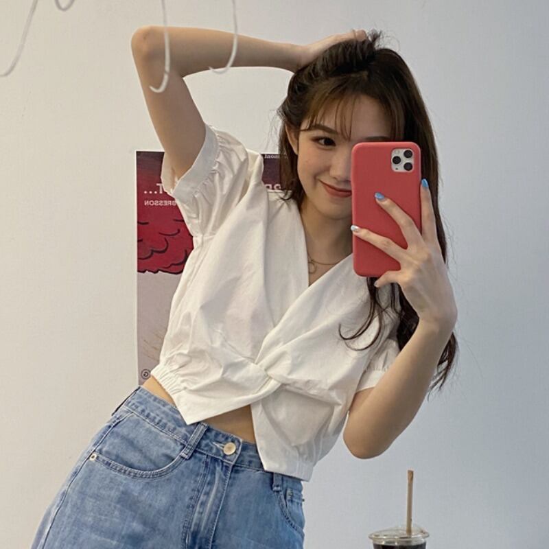 ショートトップス サマーハイウェストウェストVネック 大人ガーリー スウィート キュート カジュアル 夏物 YY-ファッション14707033363
