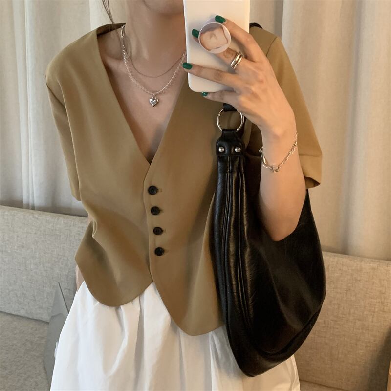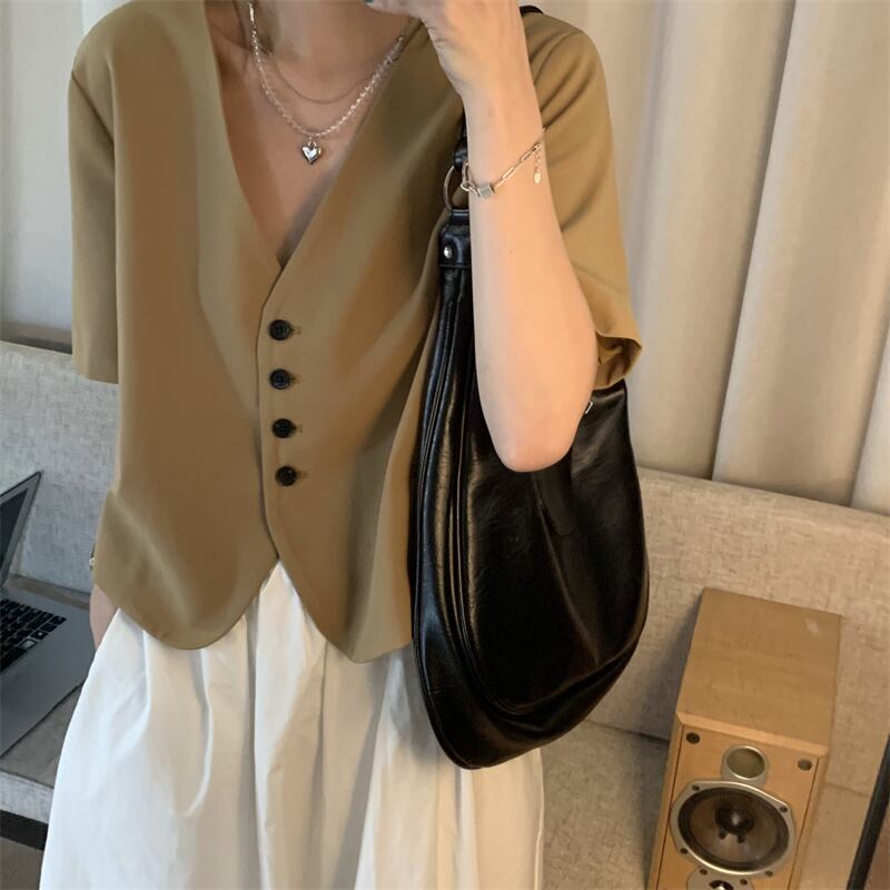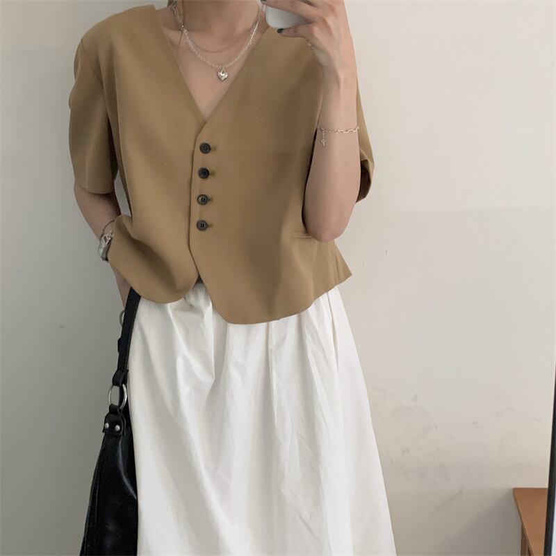 サマールーズVネックブレストショートシャツ ジャケット スタンダード薄手 レトロ 夏物 YY-ファッション38011281672