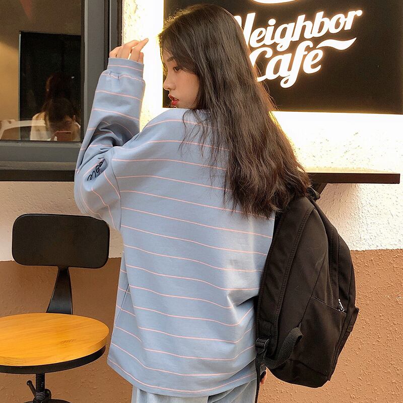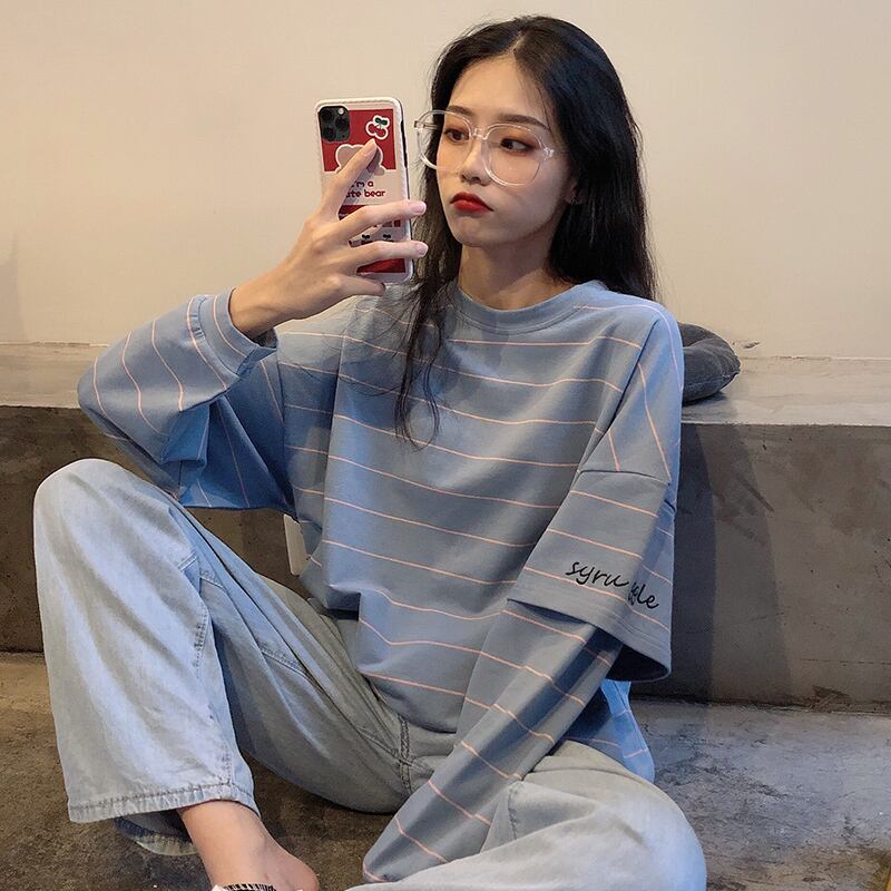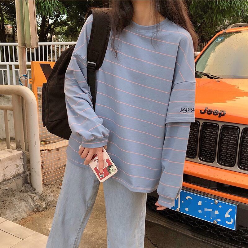 ストライプラウンドネックセーター サマーカジュアルルーズ薄手トップス 夏物 Oネック YY-ファッション63287780123