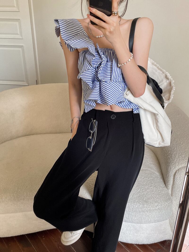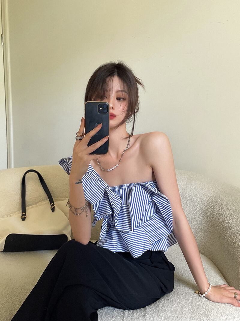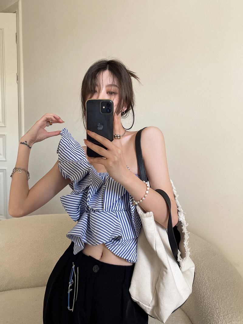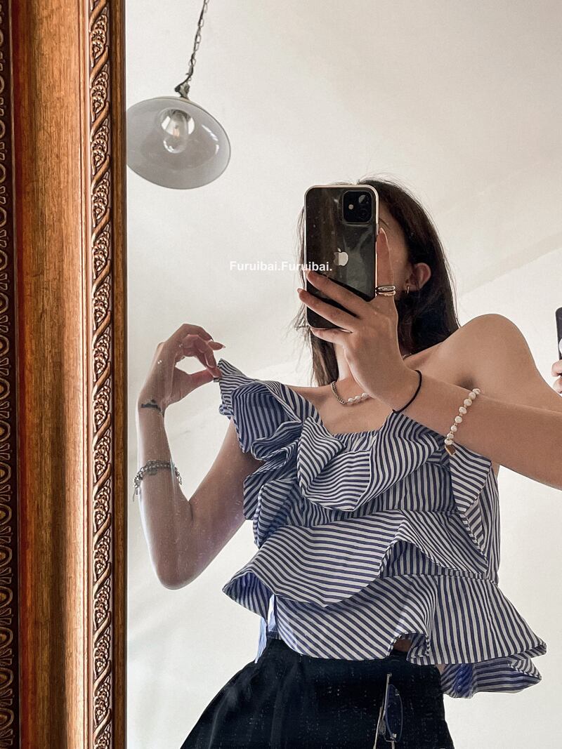 ブラウス サマーショートストライプシャツ 夏物 YY-ファッション61580778766