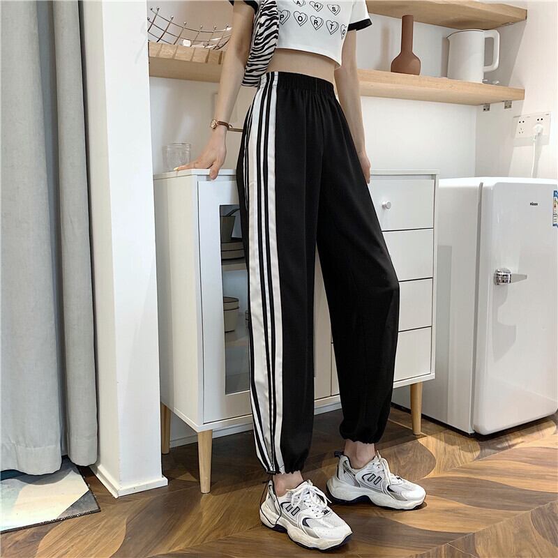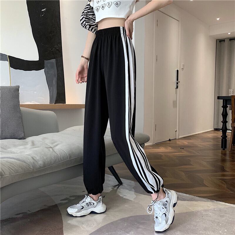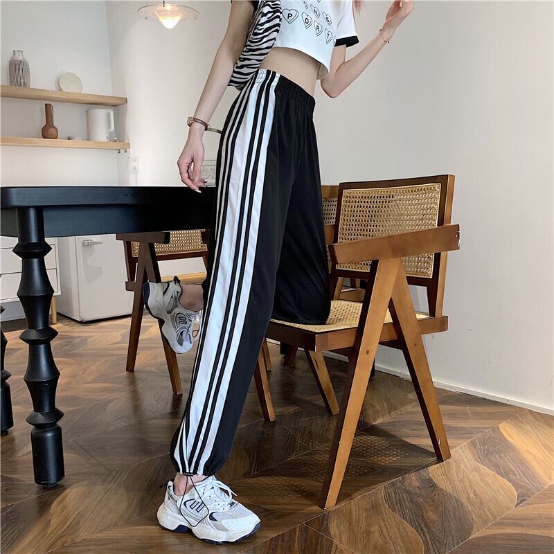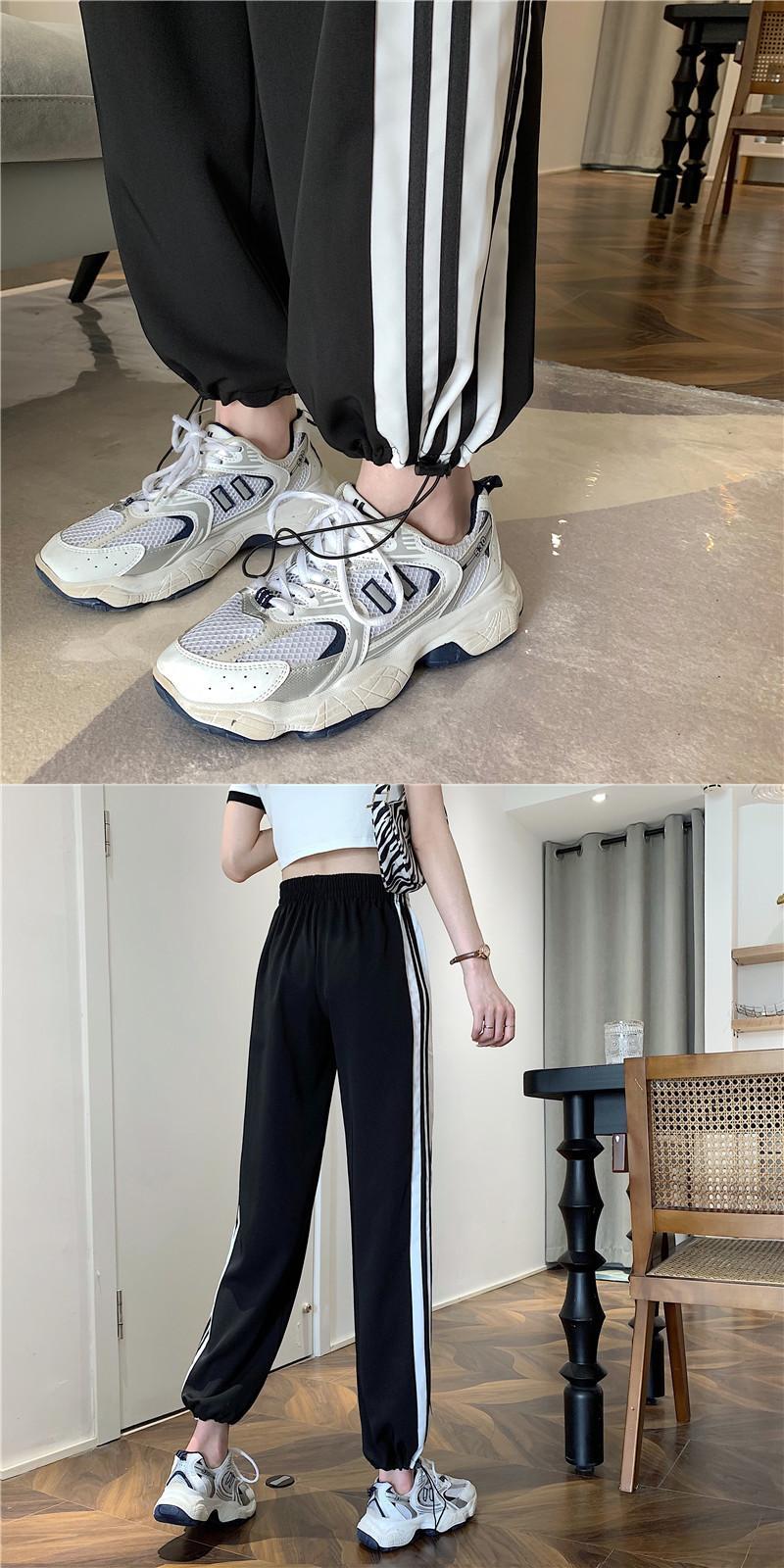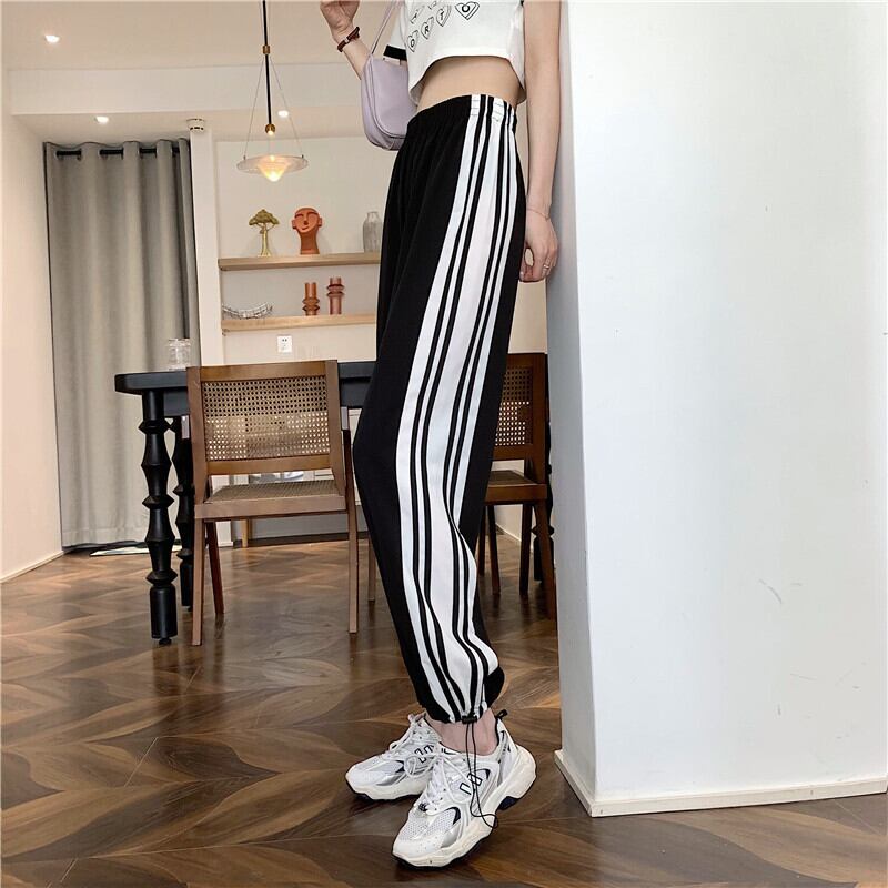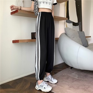 パンツ サマー薄手ストライプレギンス ブラックカジュアル 夏物 YY-ファッション32050484501
