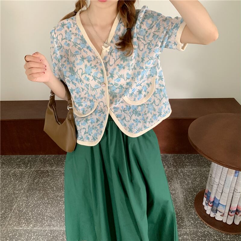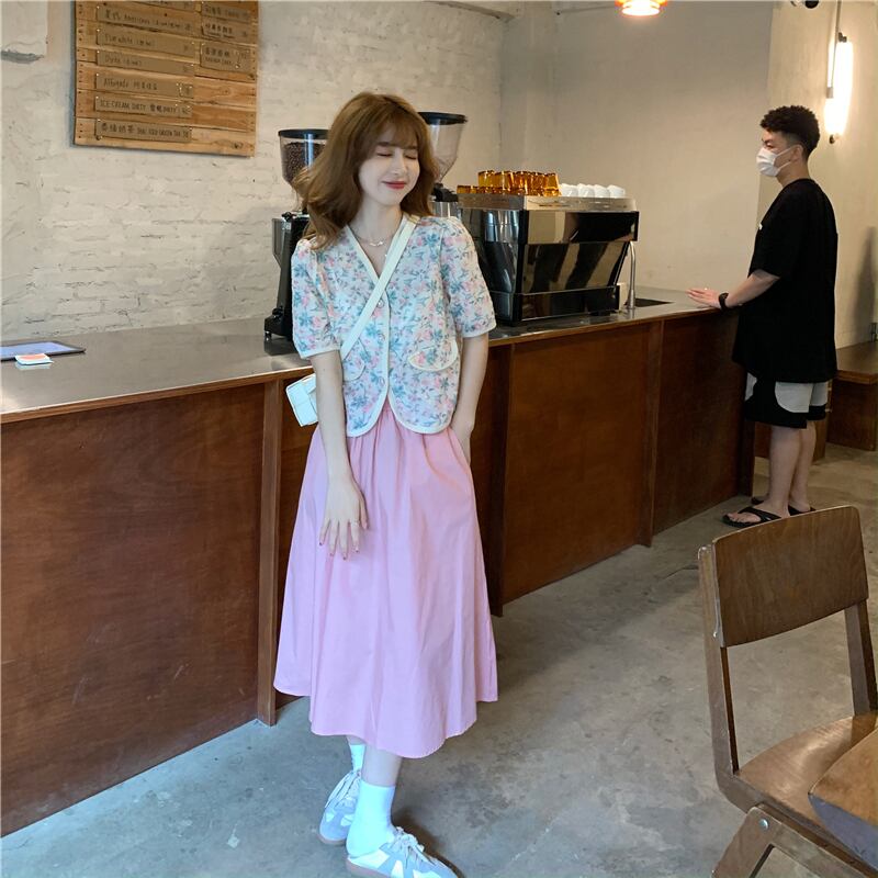 スカート セット サマーレッドフローラルシャツ トップス ハイウェストウェスト 夏物 花柄 YY-ファッション51581068212