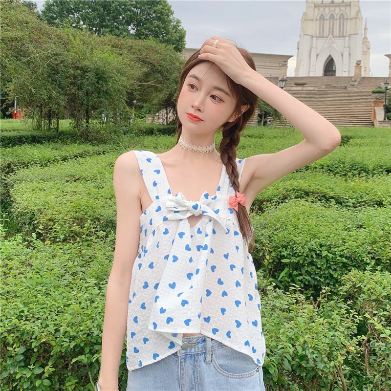 サマーアウターリボンハートホルターノースリーブトップス 大人ガーリー スウィート キュート カジュアル 夏物 ワイドショルダー YY-ファッション15585457330