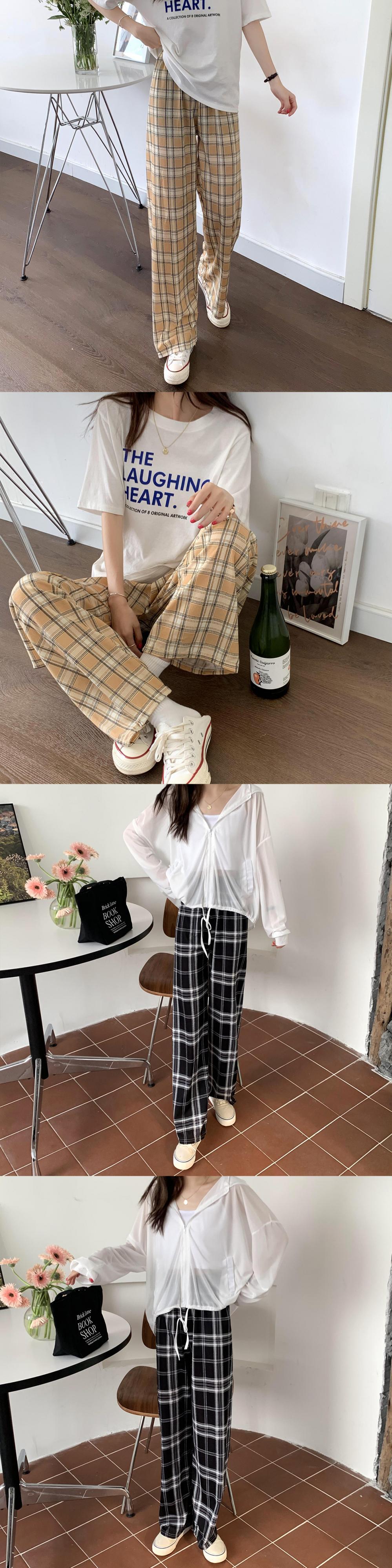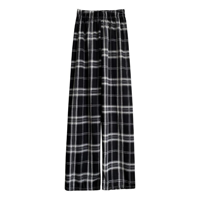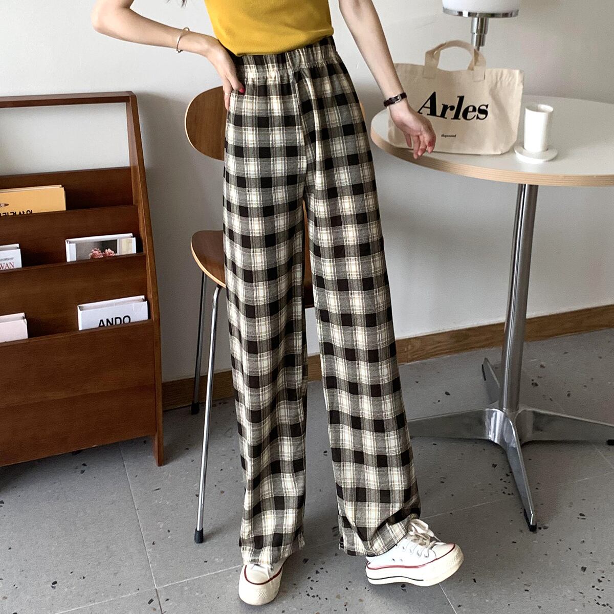 パンツ サマー薄手ルーズカジュアル格子柄ハイウェストウェストワイドレッグ 夏物 ワイドパンツ YY-ファッション72079425716