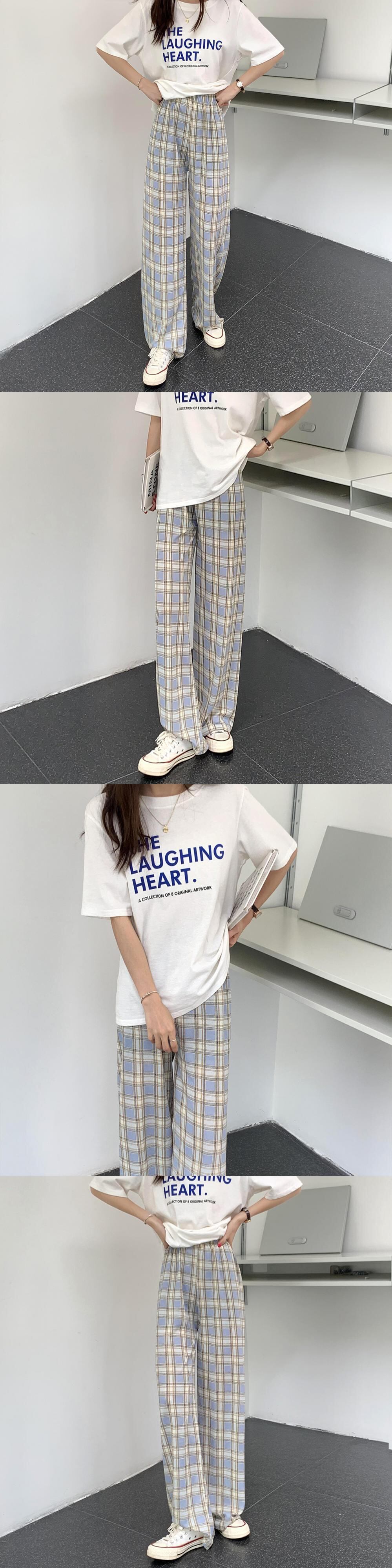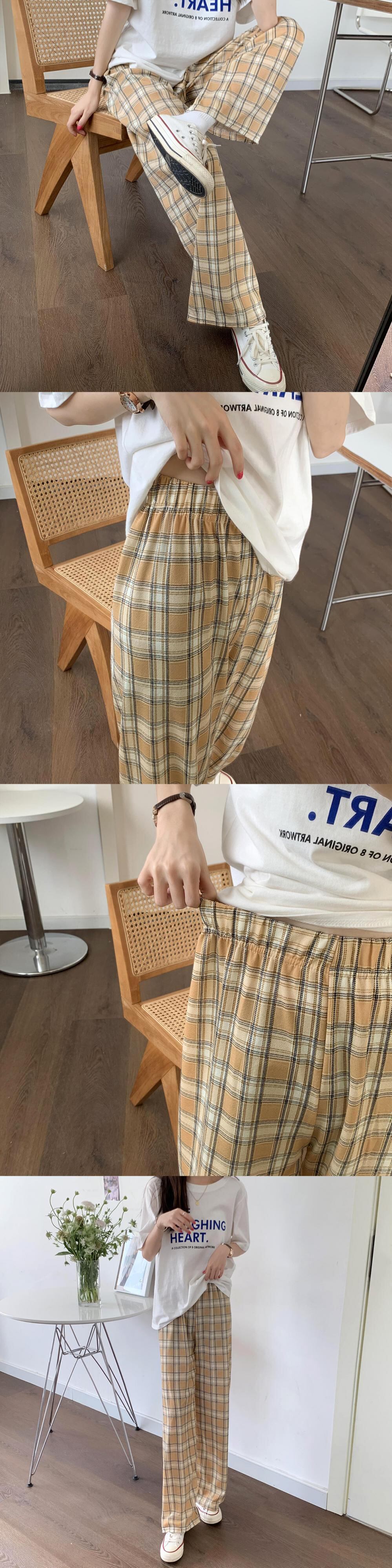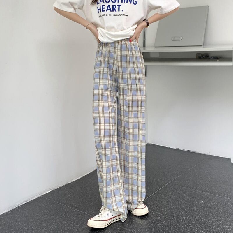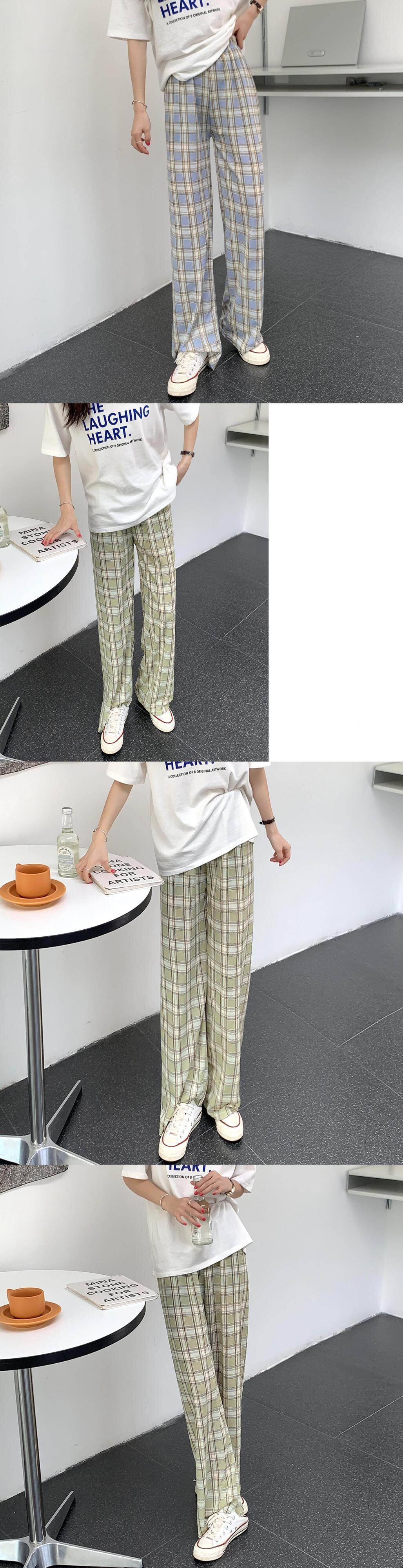 パンツ サマー薄手ルーズカジュアル格子柄ハイウェストウェストワイドレッグ 夏物 ワイドパンツ YY-ファッション72079425716