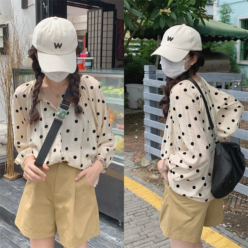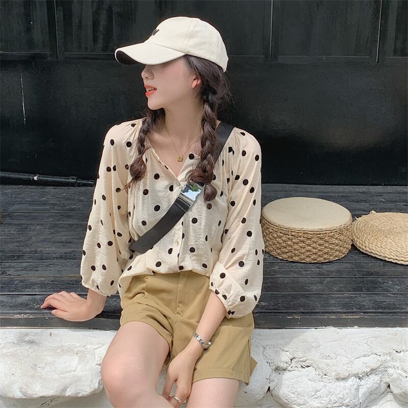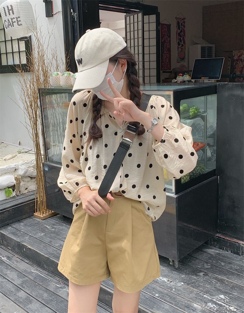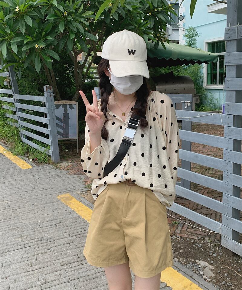 水玉シャツ サマースタンダードトップス ロング レトロ 夏物 YY-ファッション16168134082