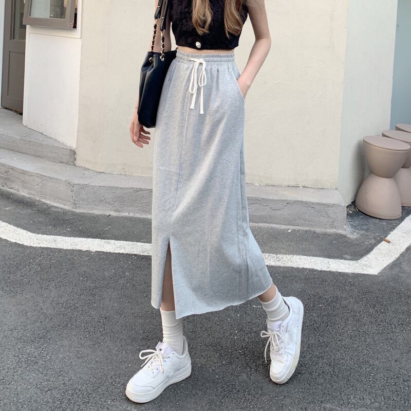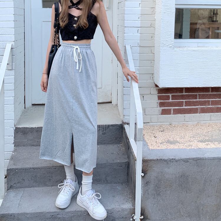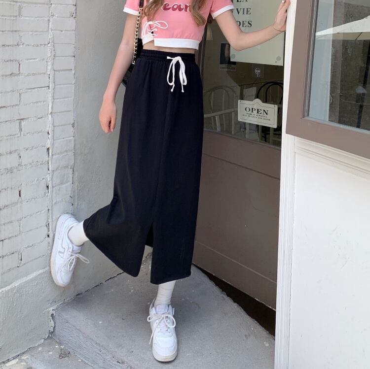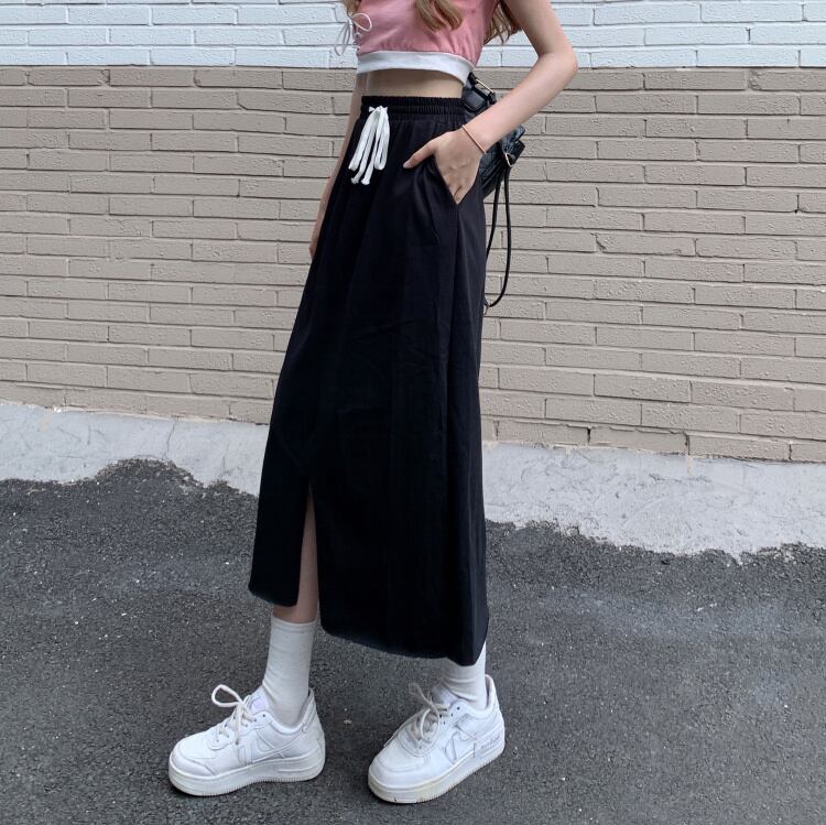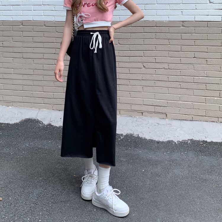 スリットスカート サマーストレッチハイウェストウェスト薄手Aライン エラスティック 伸縮 夏物 YY-ファッション37315815190